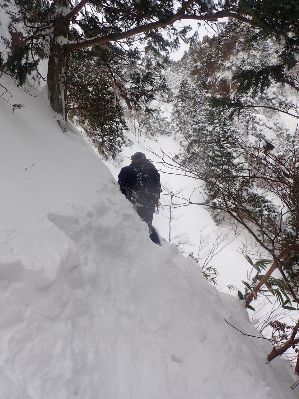 トレースあるから楽々と思ってたけどツボ足では流石にズボズボなのでわかんをつける。