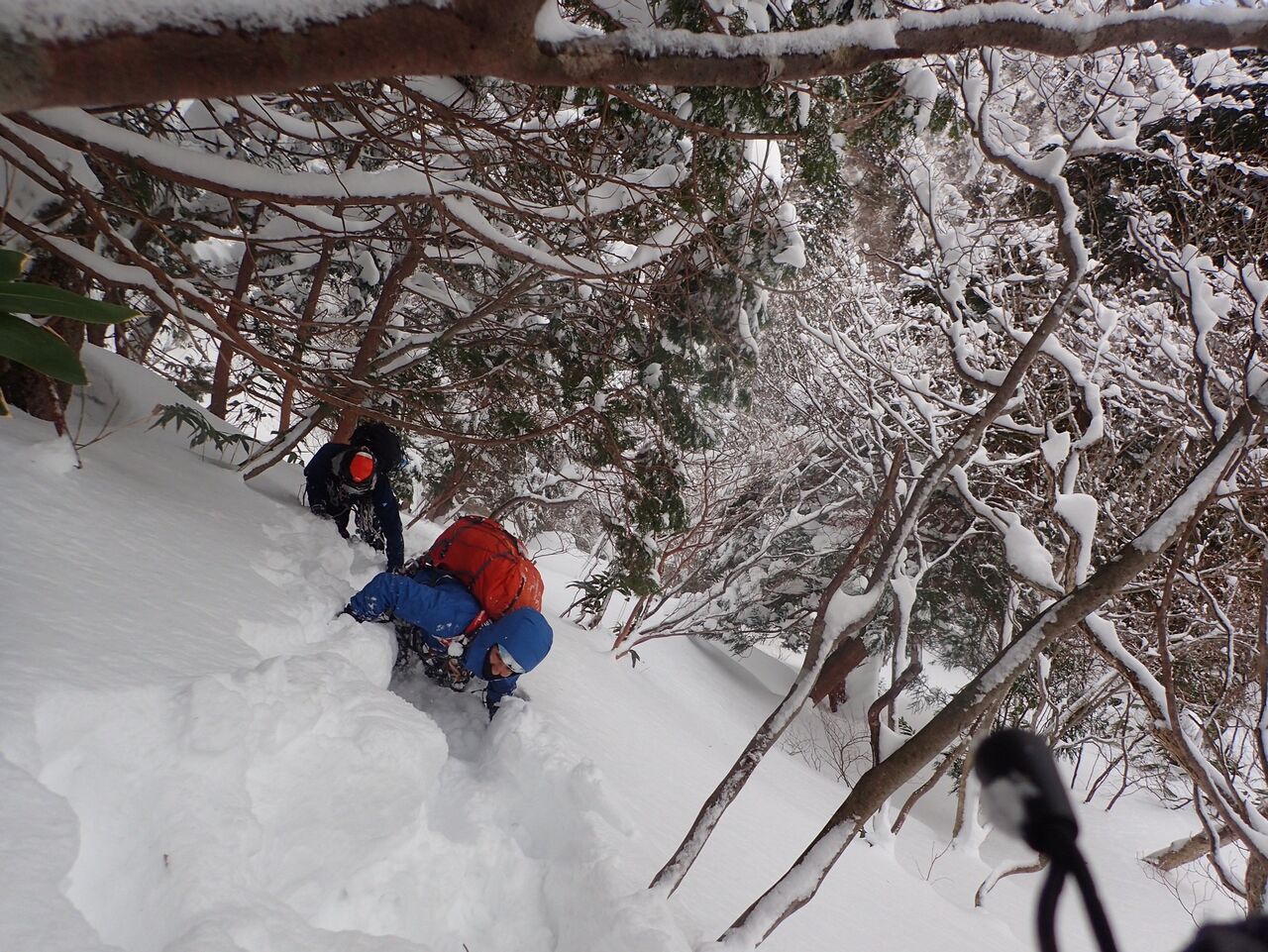 序盤はスネから腰くらいだったものの、傾斜があるところでは頭くらいの高さになったりもして思う存分に交代番子でラッセルをする。