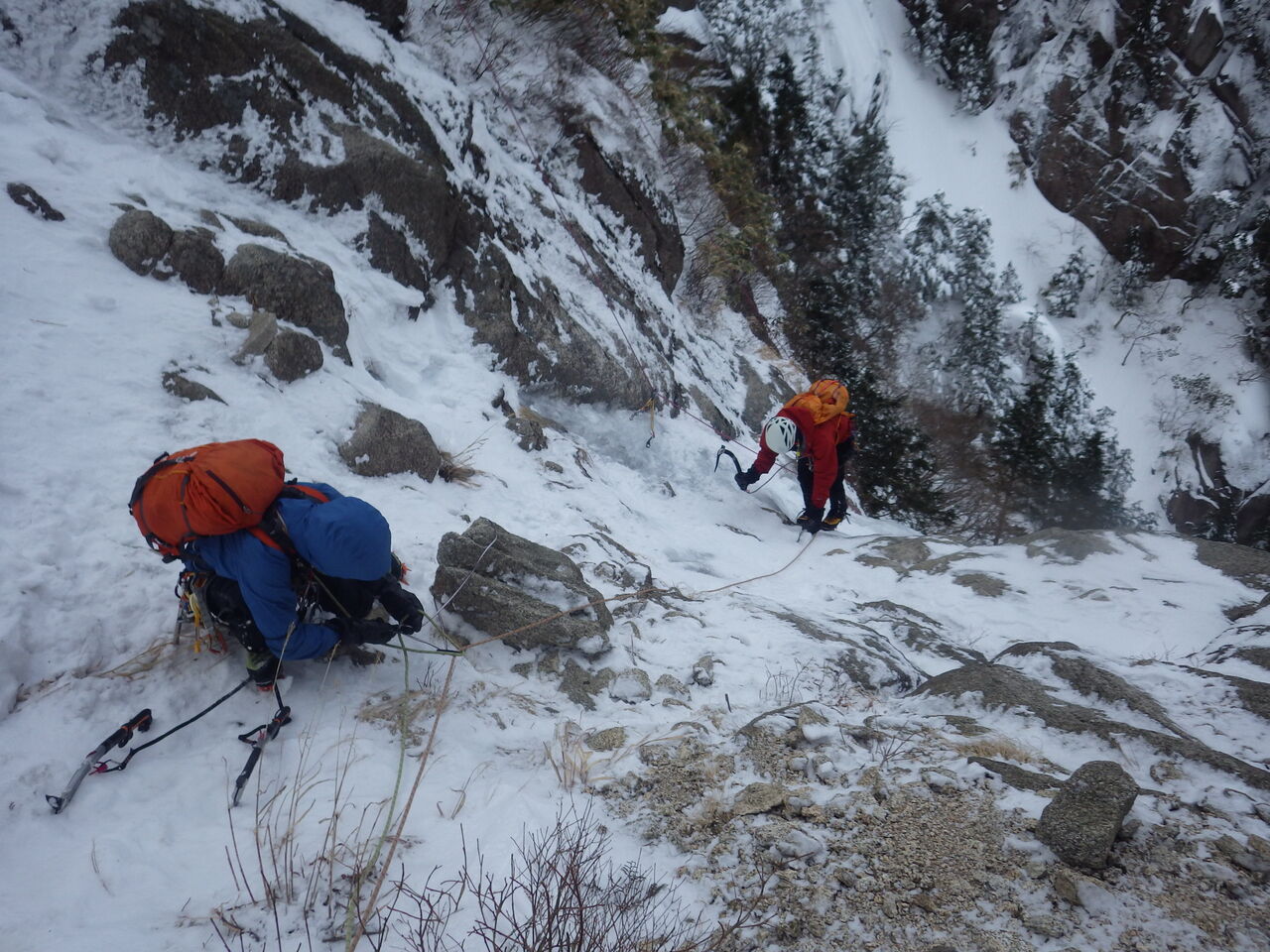 ※ 懸垂で何処に下降するか不明だったのでデポをせず2ザックで登攀