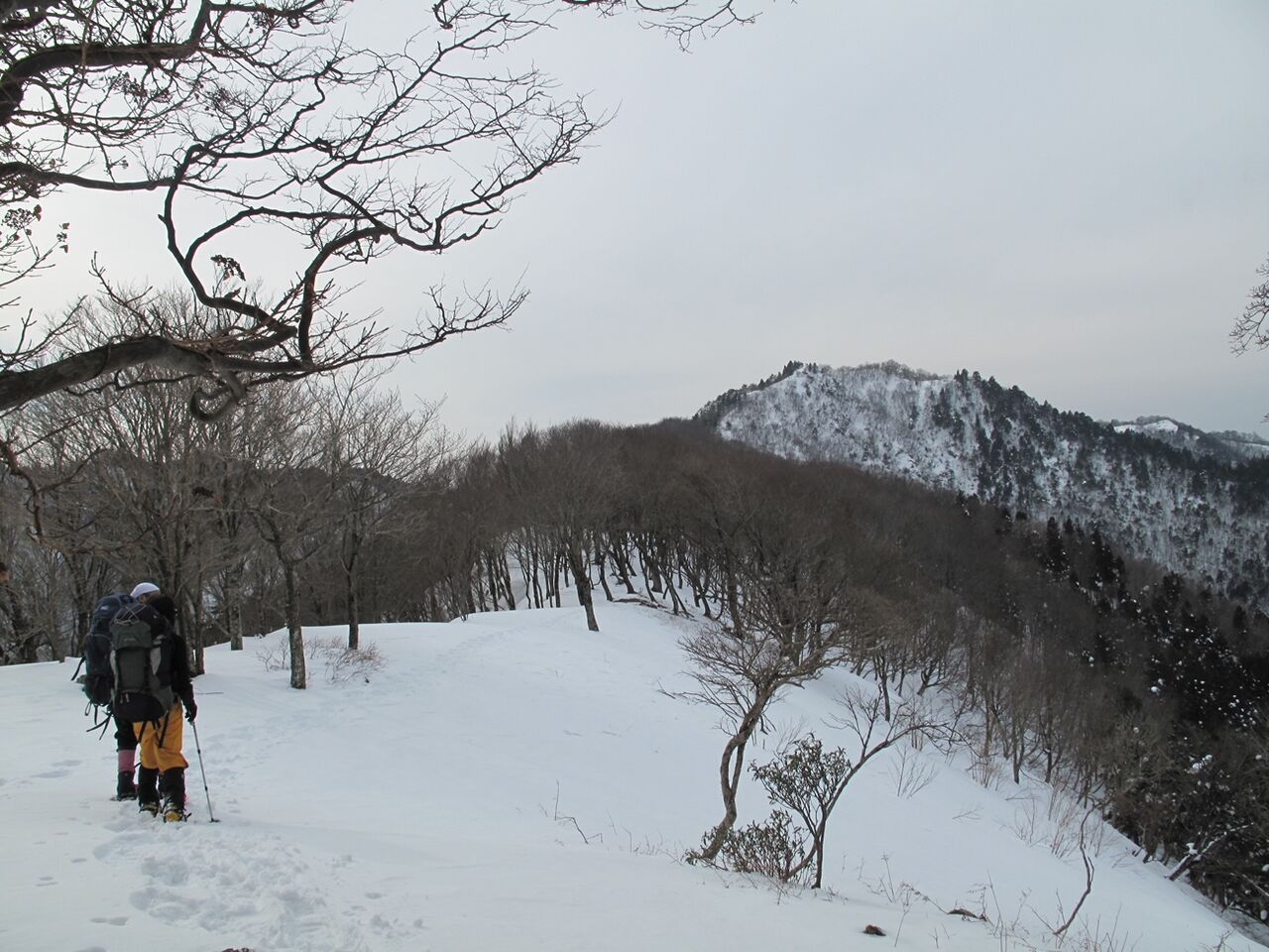トレースにだいぶ助けられて、鶴瓶岳を越えて予定通りイクワタ峠へ。