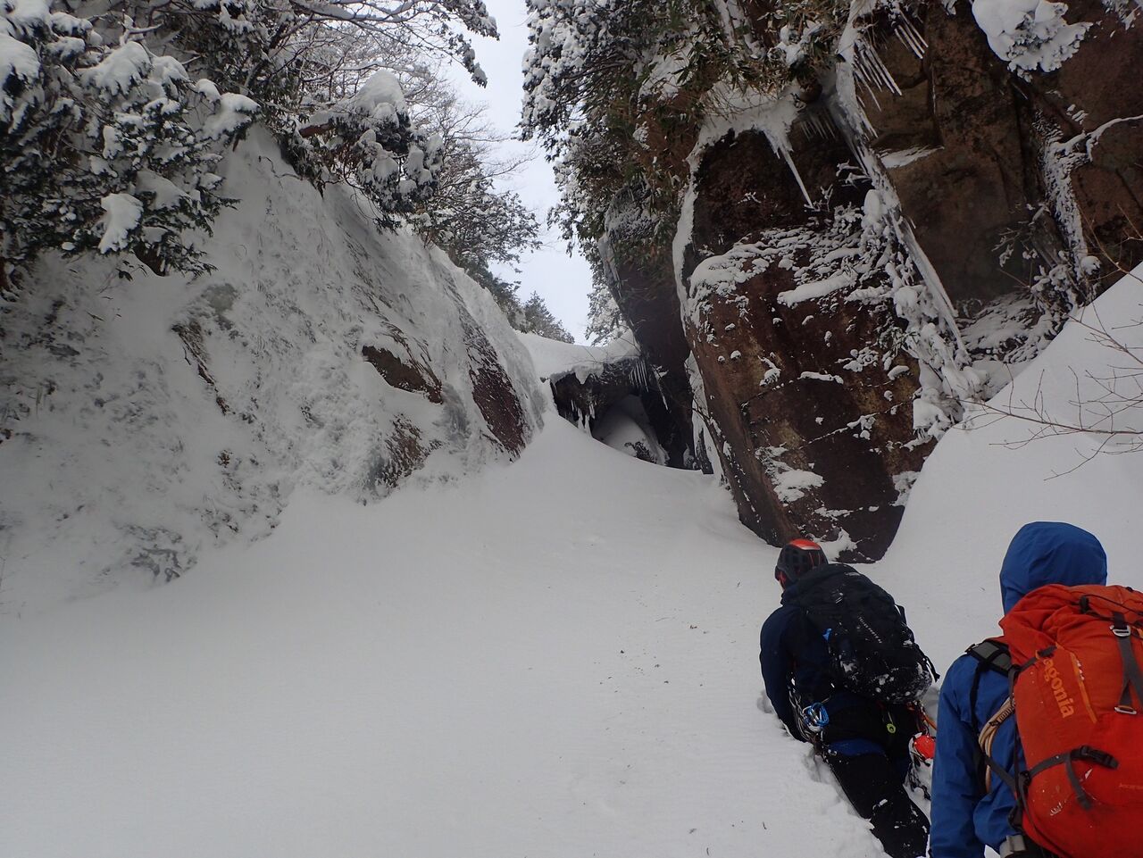 バーチカルな喉を抜けると傾斜が寝てきて一安心