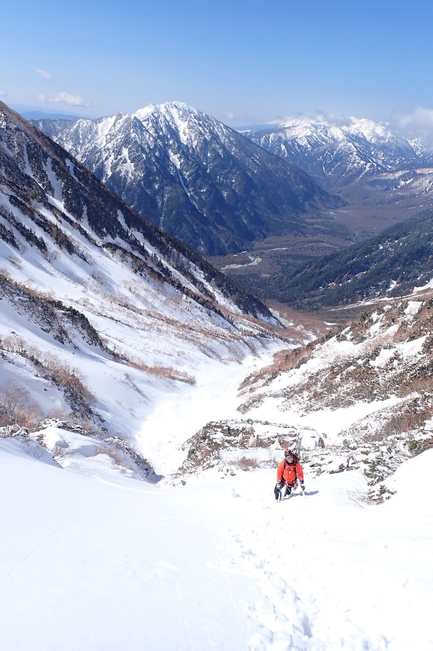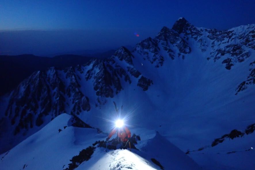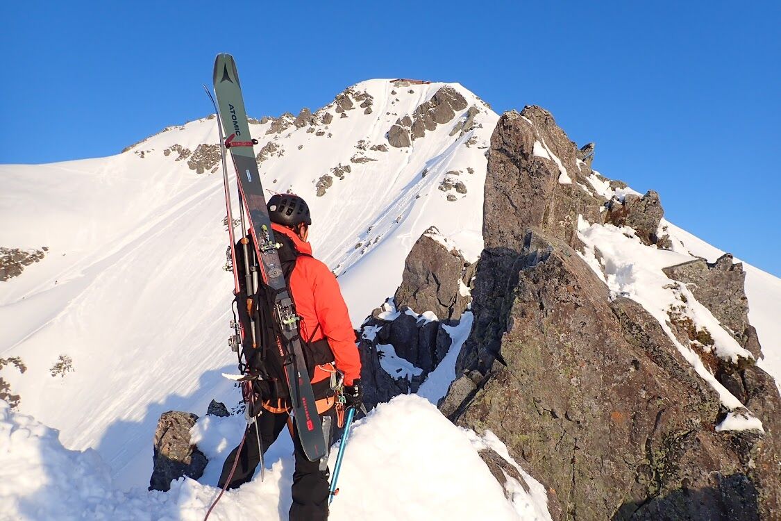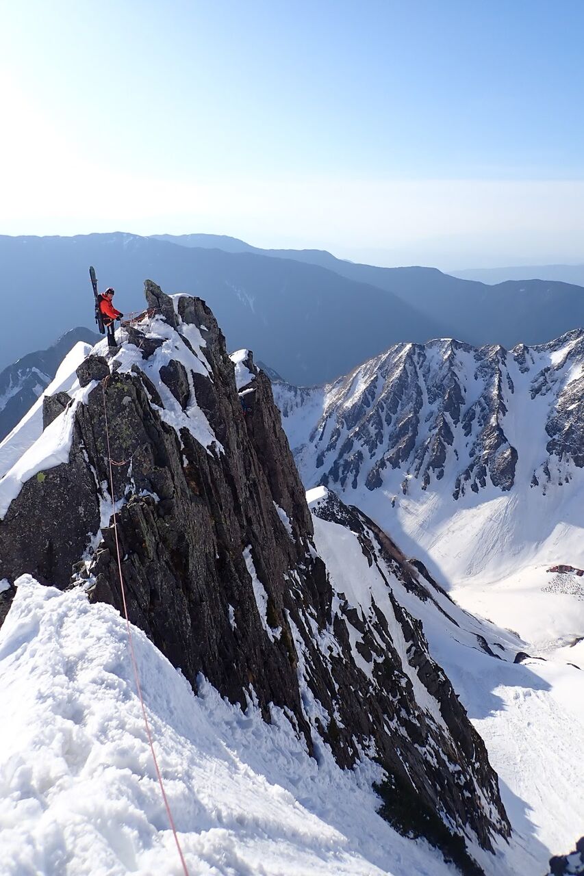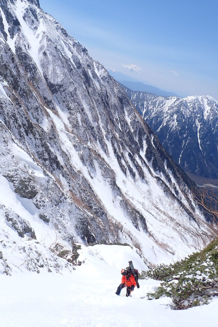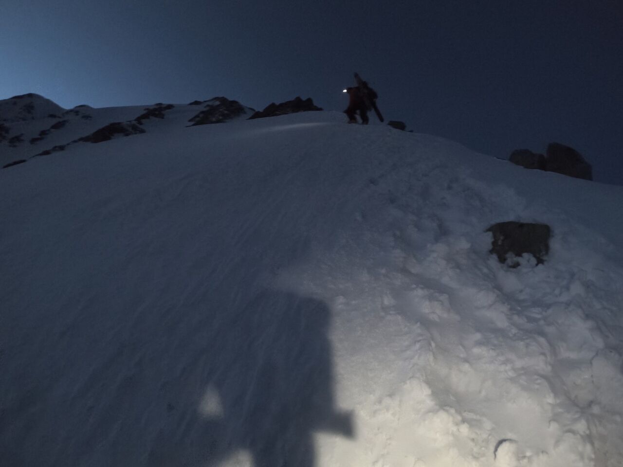 今回、稜線上もロープを出すようなところはなかったが、もっと雪が多ければロープを出したりしたかもしれないし、雪稜で確保点が思うように取れなかったりもすると思うので、ほんと条件次第なのだろう。