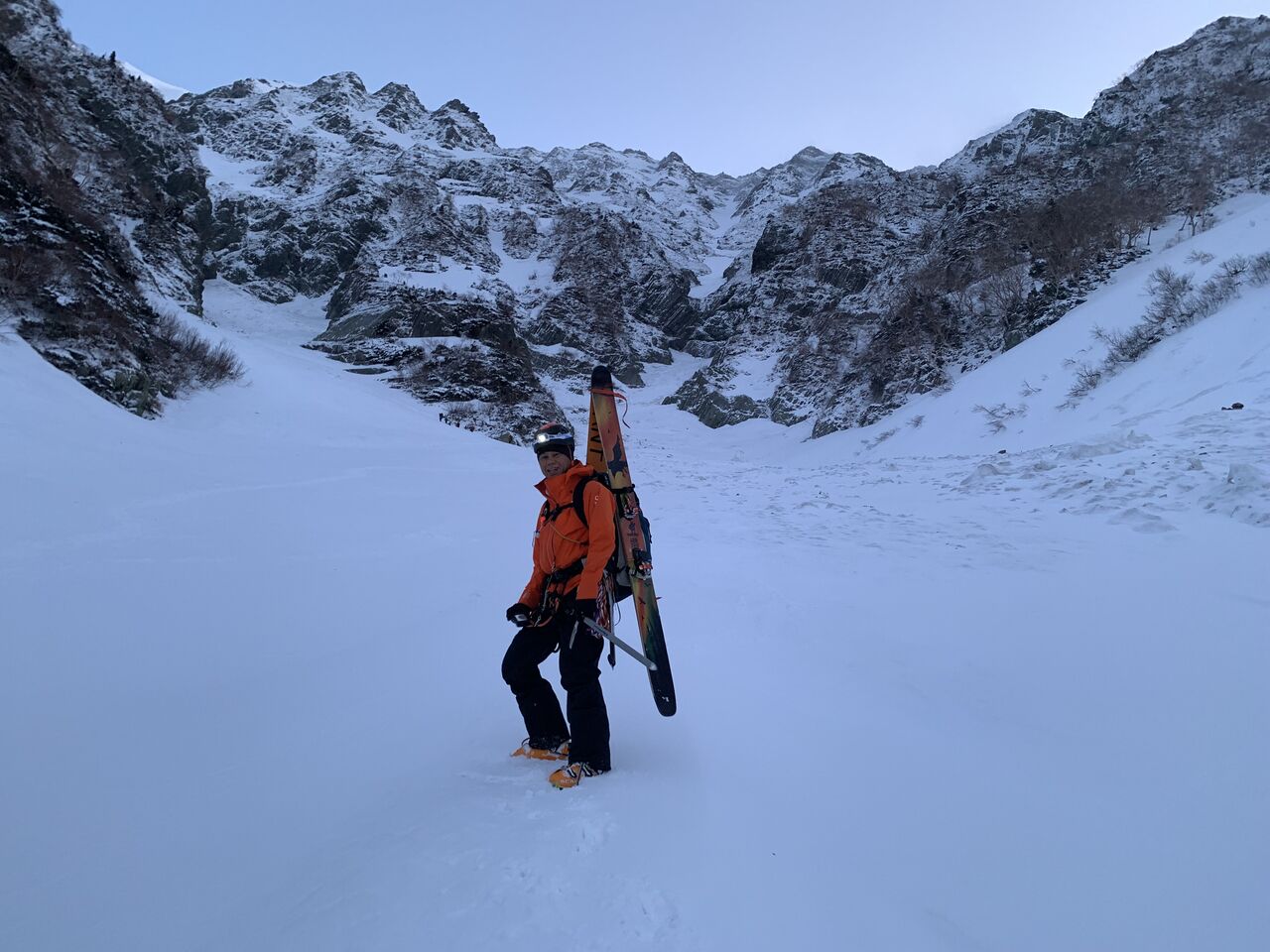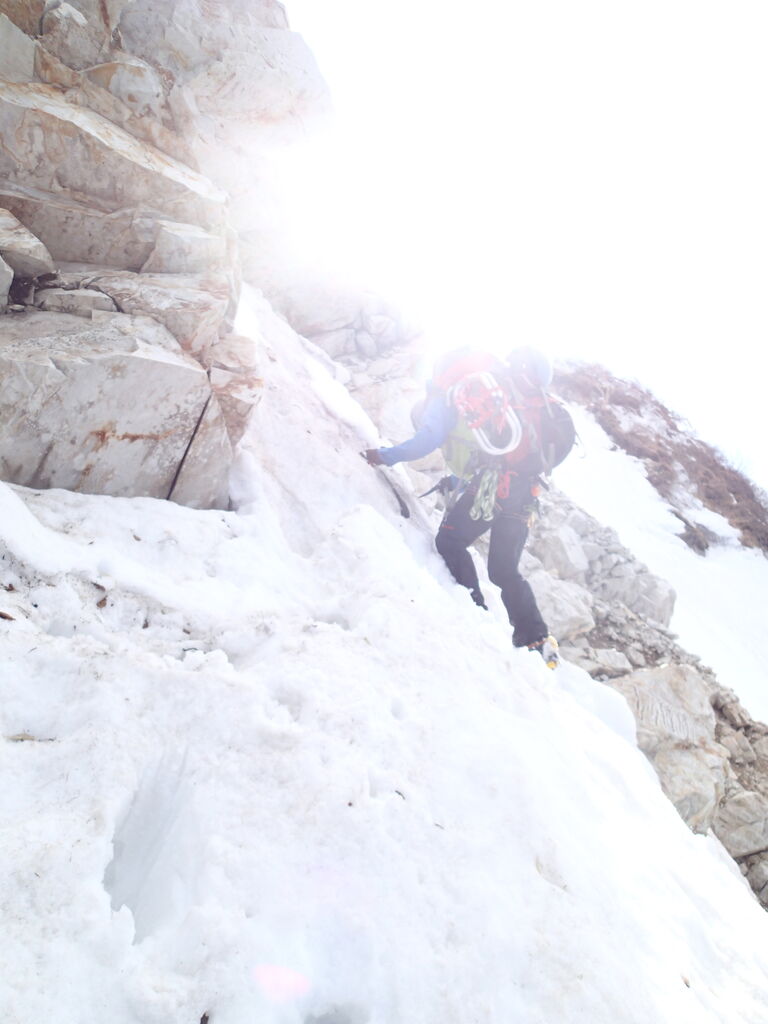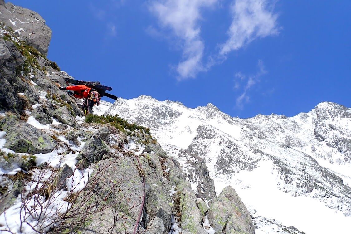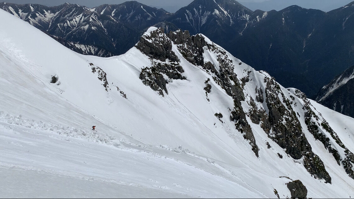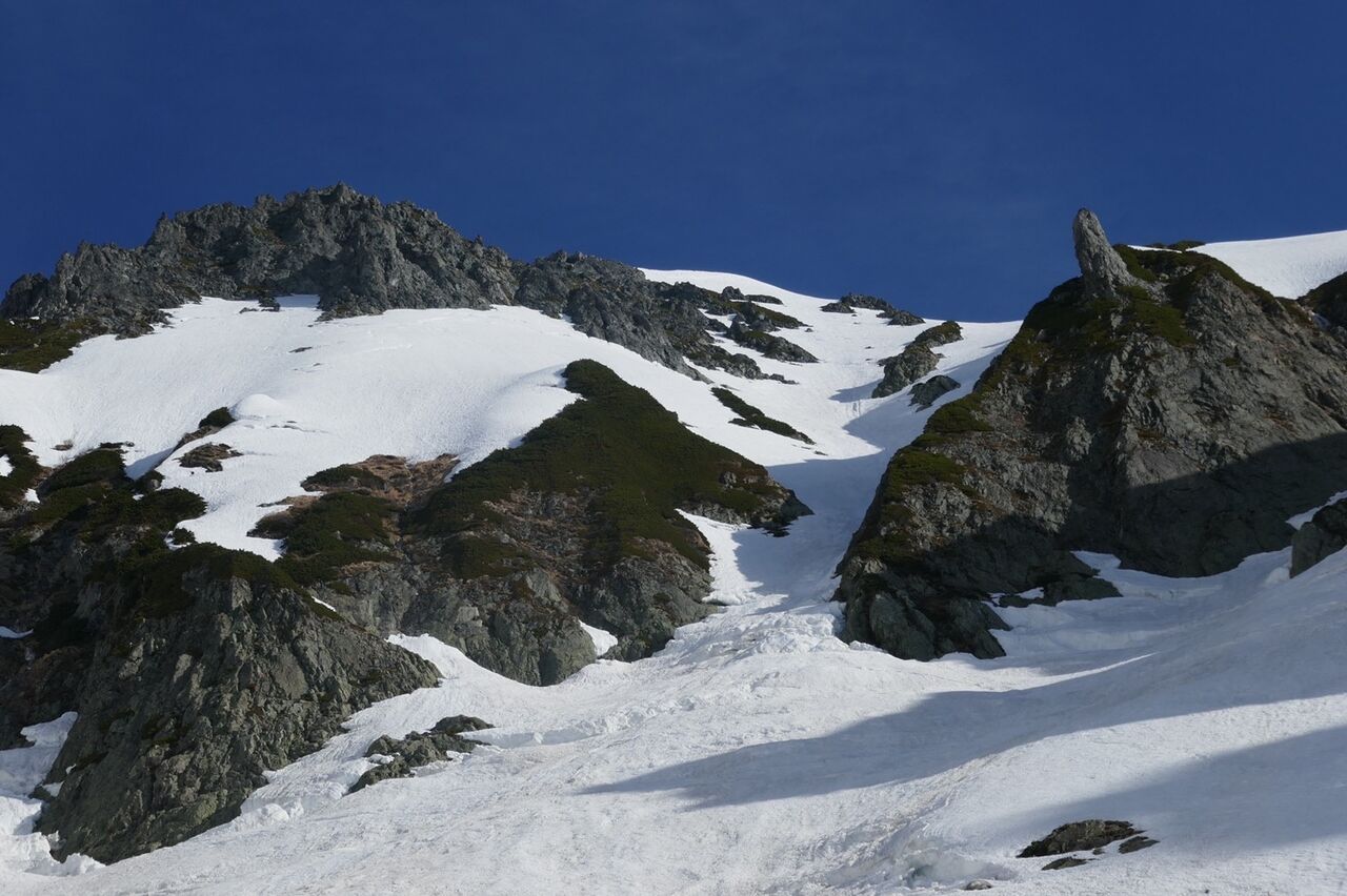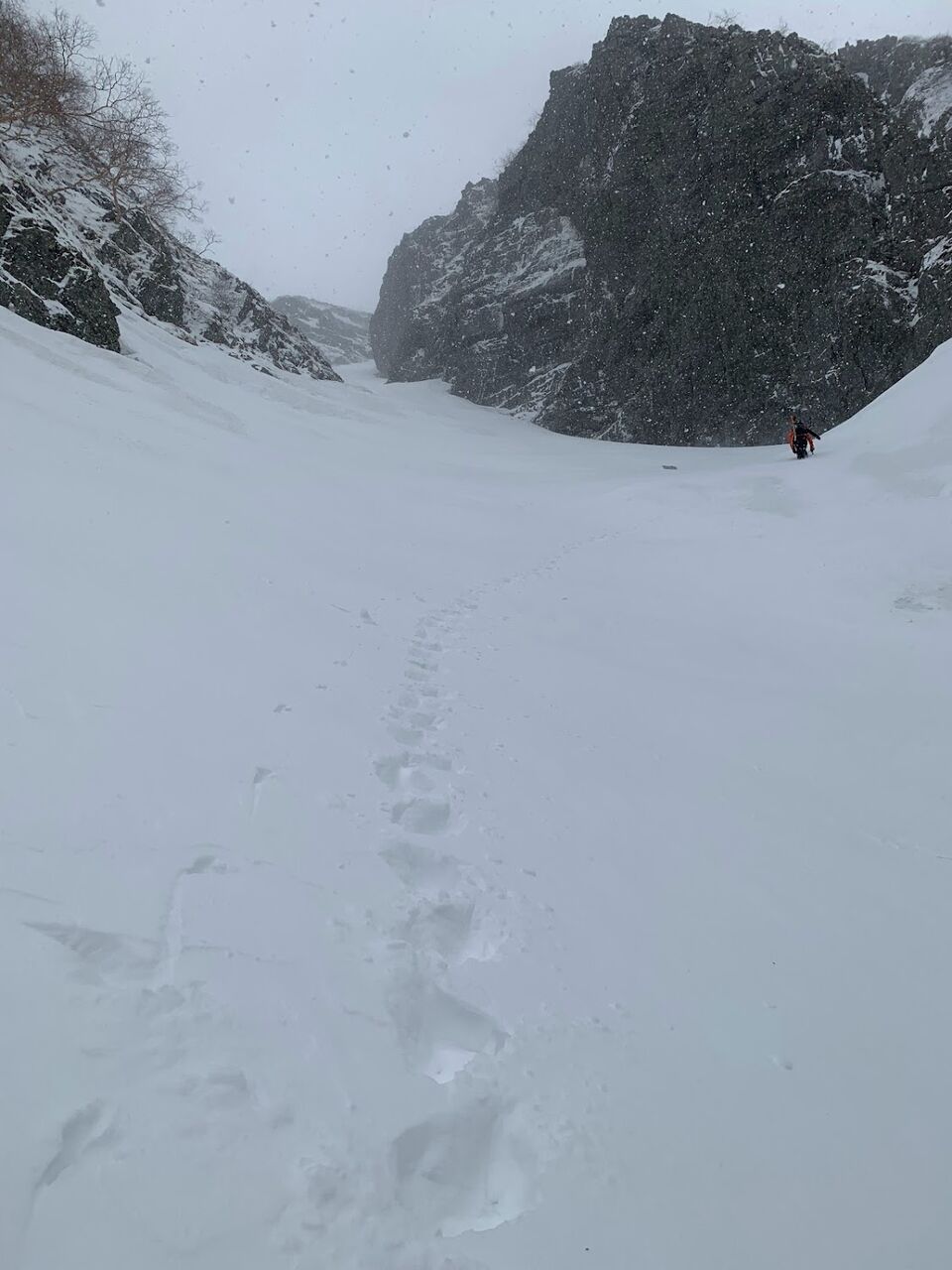 今回、稜線上もロープを出すようなところはなかったが、もっと雪が多ければロープを出したりしたかもしれないし、雪稜で確保点が思うように取れなかったりもすると思うので、ほんと条件次第なのだろう。
