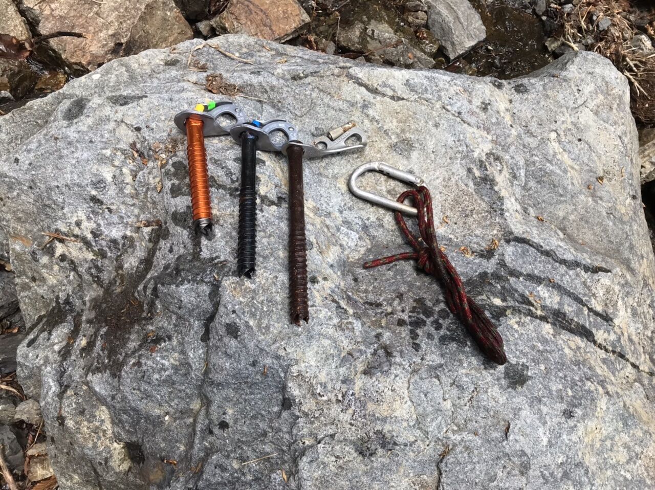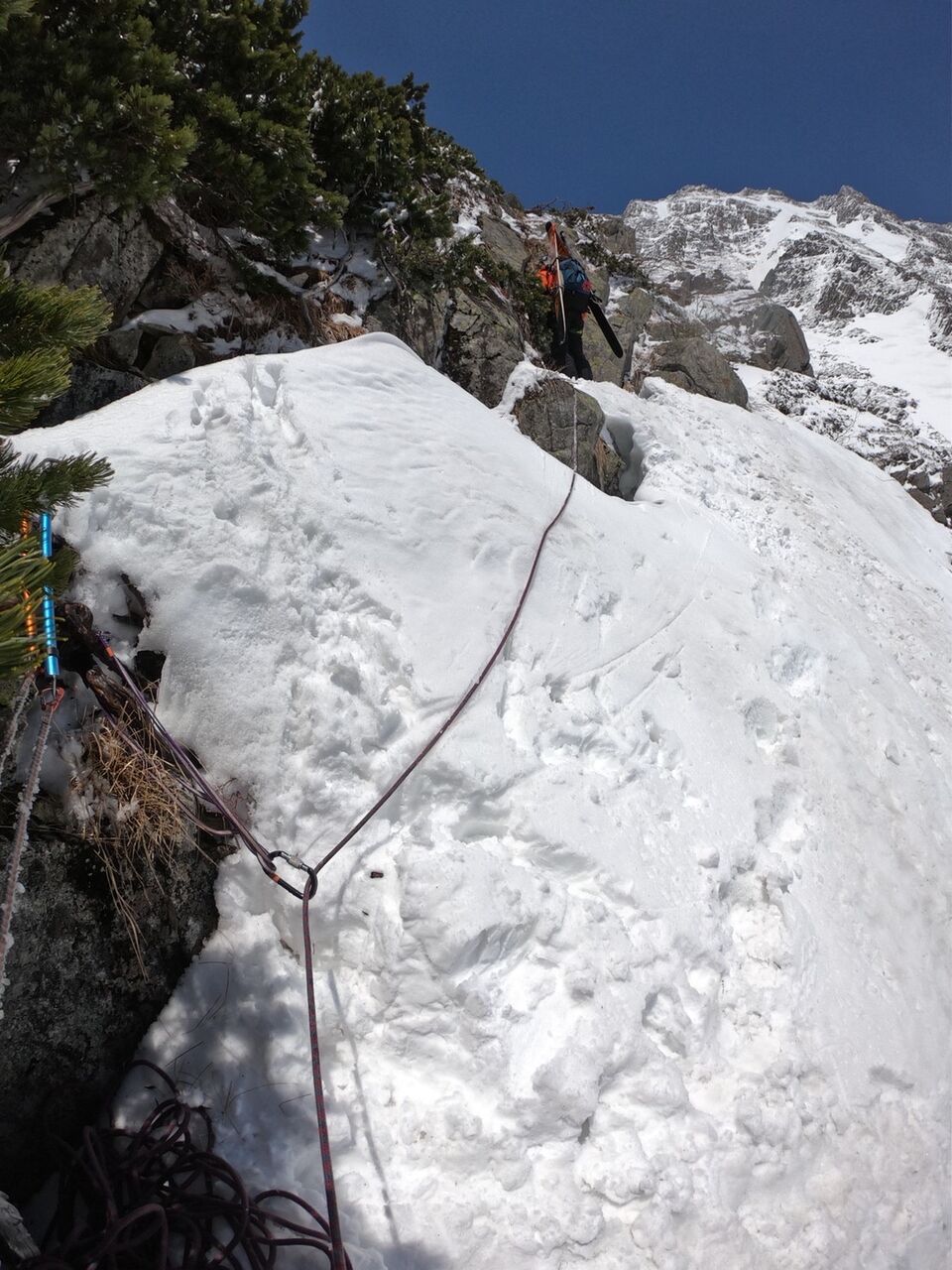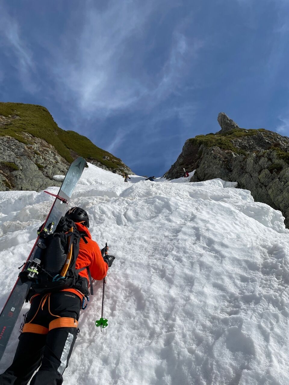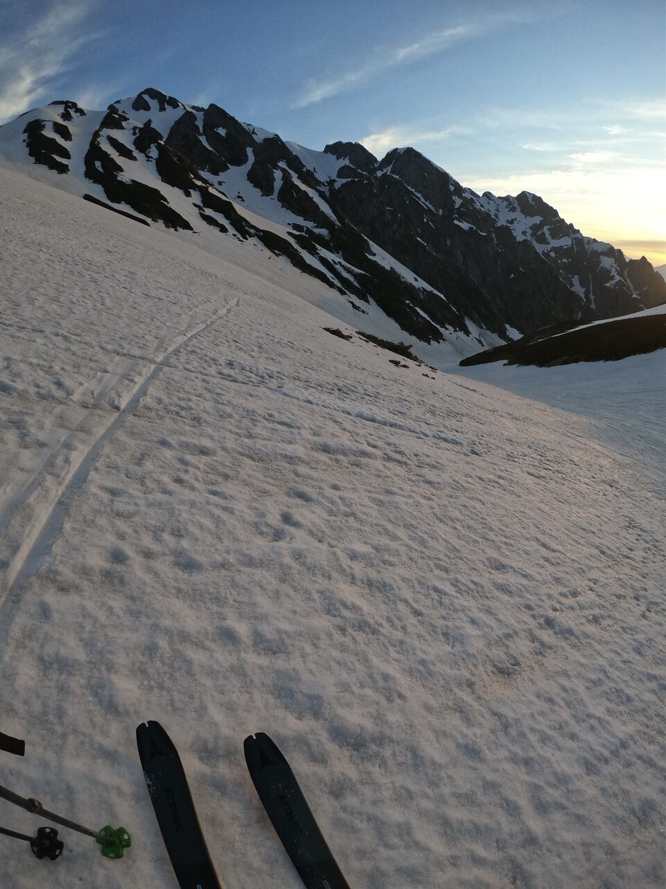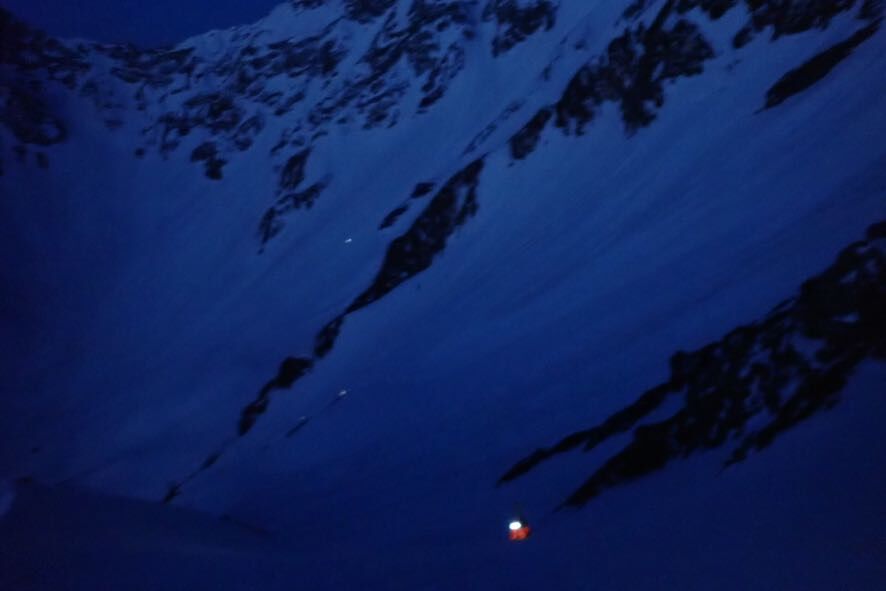 今回、稜線上もロープを出すようなところはなかったが、もっと雪が多ければロープを出したりしたかもしれないし、雪稜で確保点が思うように取れなかったりもすると思うので、ほんと条件次第なのだろう。
