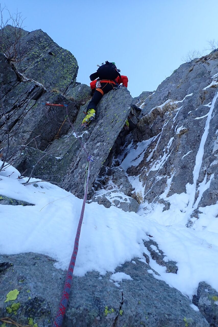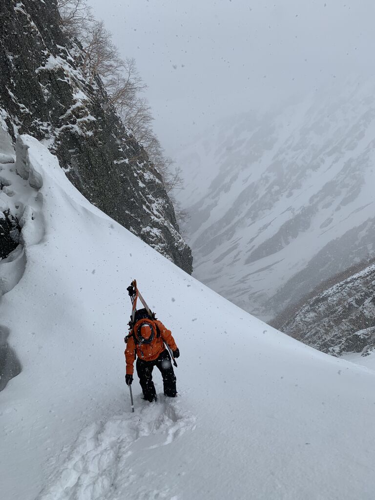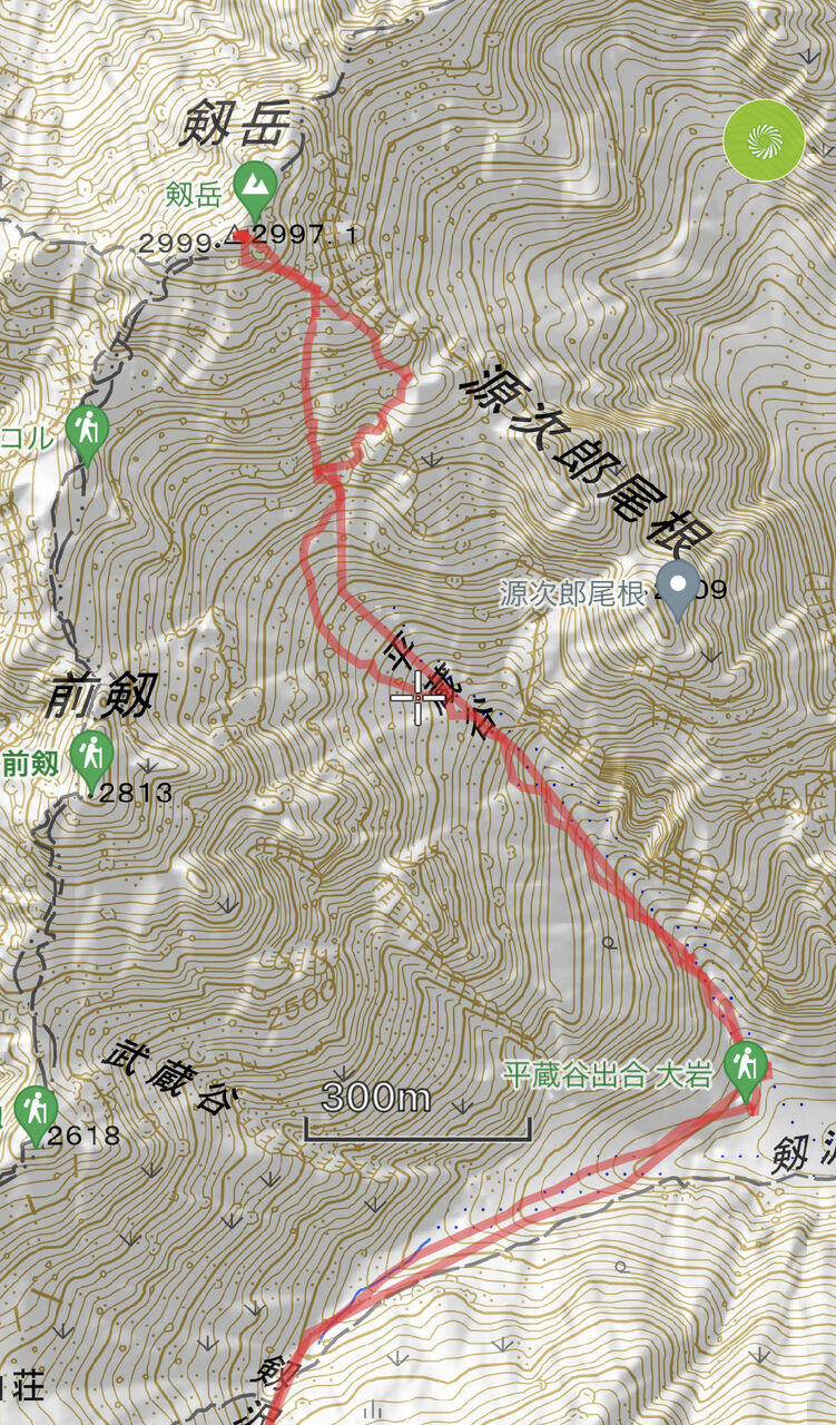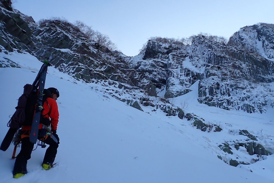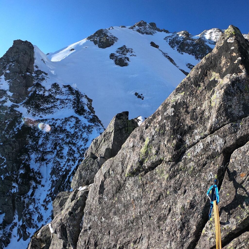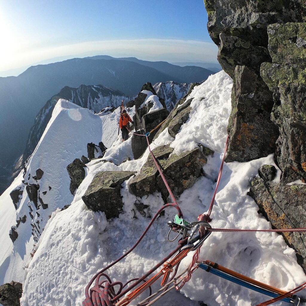今回、稜線上もロープを出すようなところはなかったが、もっと雪が多ければロープを出したりしたかもしれないし、雪稜で確保点が思うように取れなかったりもすると思うので、ほんと条件次第なのだろう。