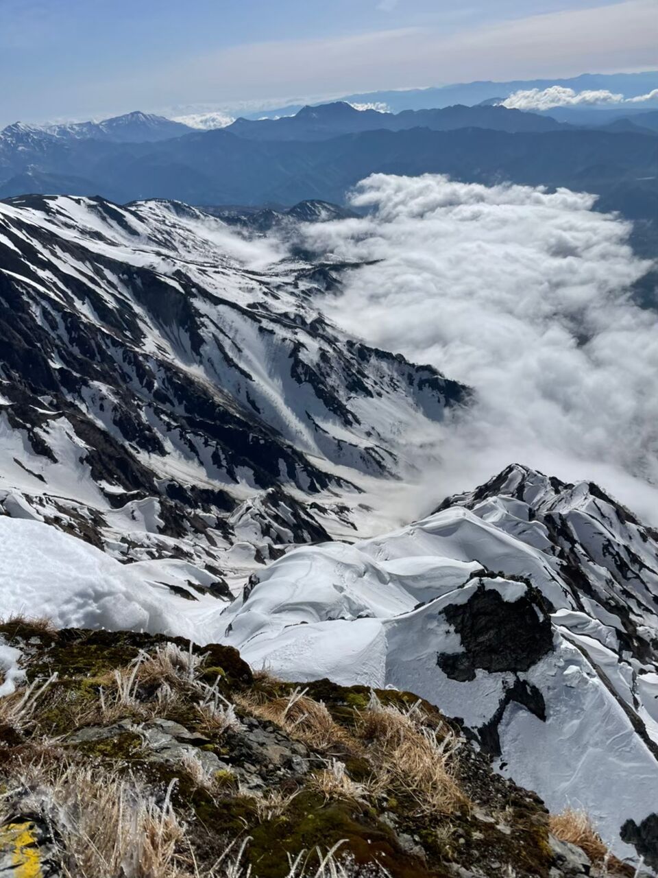 「誰もいないんやったら主稜でもよかったかもね。」と話しつつも、ギザギザの白馬岳主稜線を見ながらの尾根歩きも爽快なものである。白馬岳主稜も来年あたり登ってみたい。