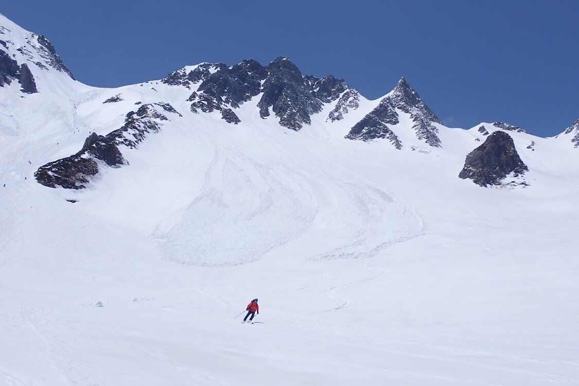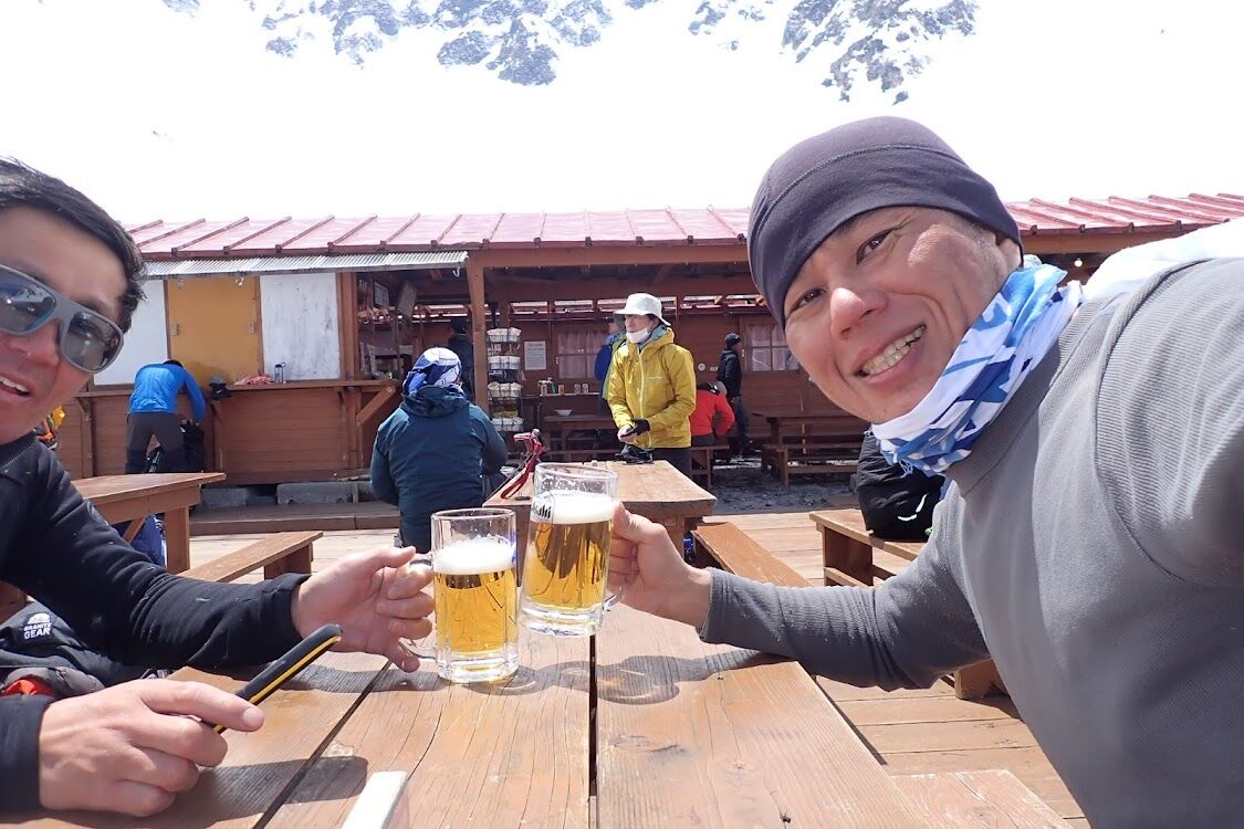 本当はそこから白馬鑓ヶ岳へ向かい鑓温泉に入浴してから下山の予定であったが昨日、今日と満足したのでこのまま大雪渓から下山することにして下る。この日もたくさんの山スキーヤー達が大雪渓を登っていました。僕は経験がないけど山スキーも楽しそう。それこそ白馬鑓温泉で山スキーとか。