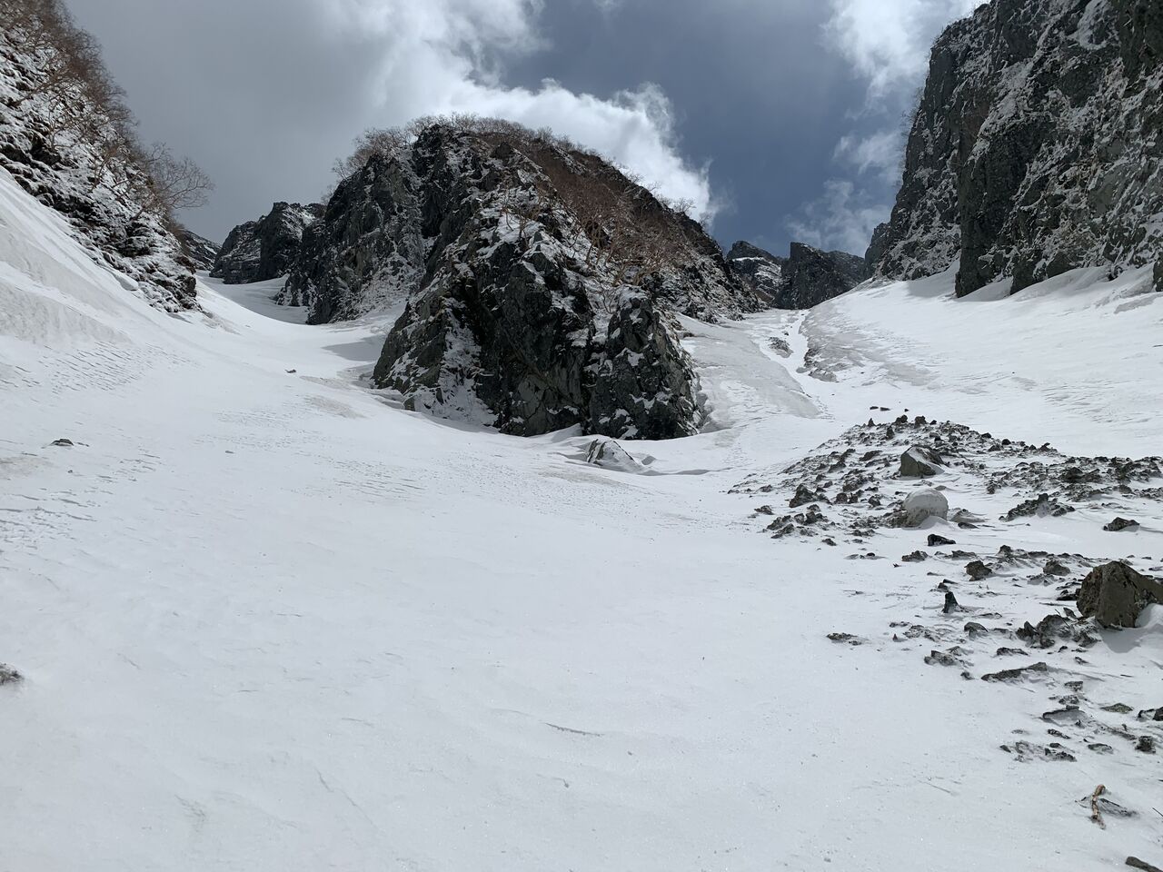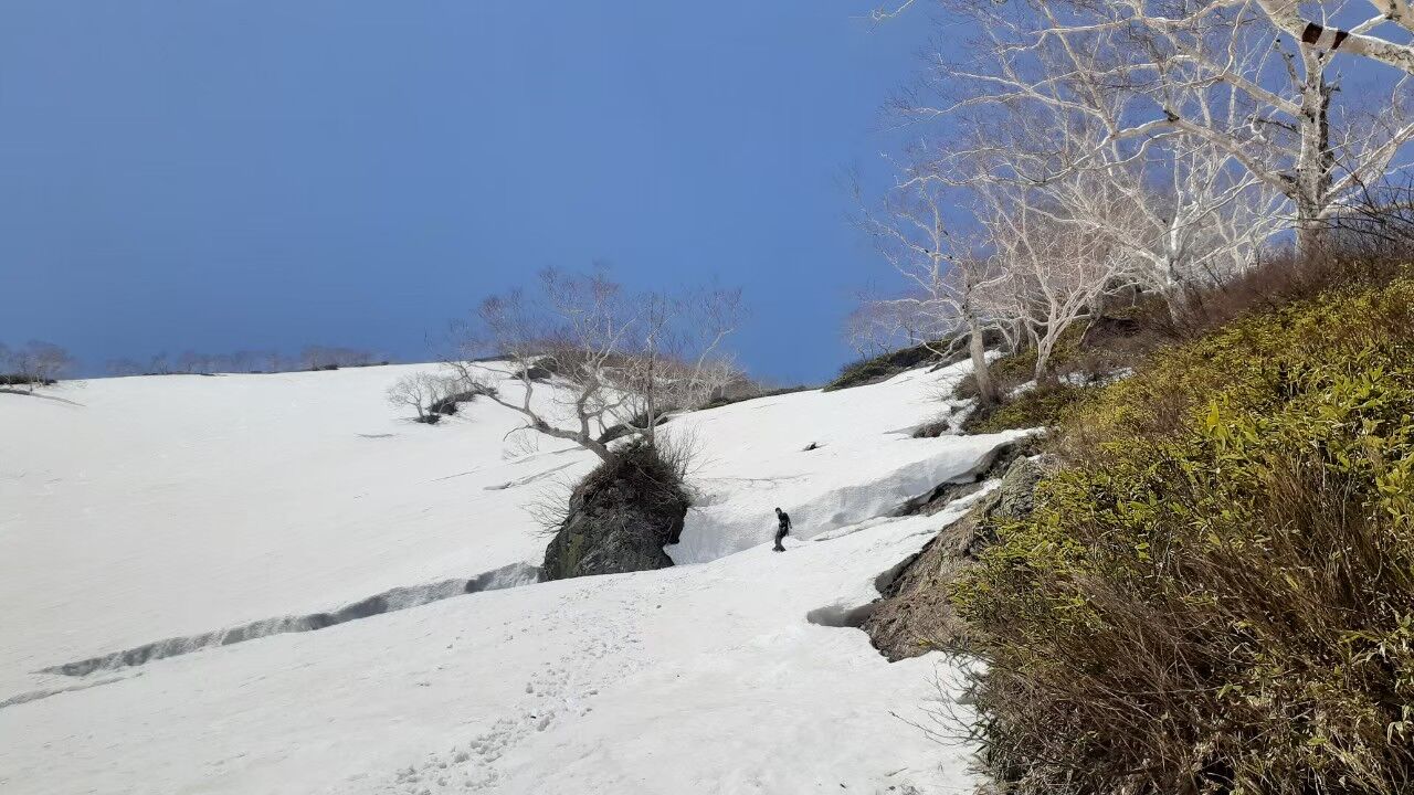 雪が腐り気味のところがあったりと慎重に足を進めつつ通過。