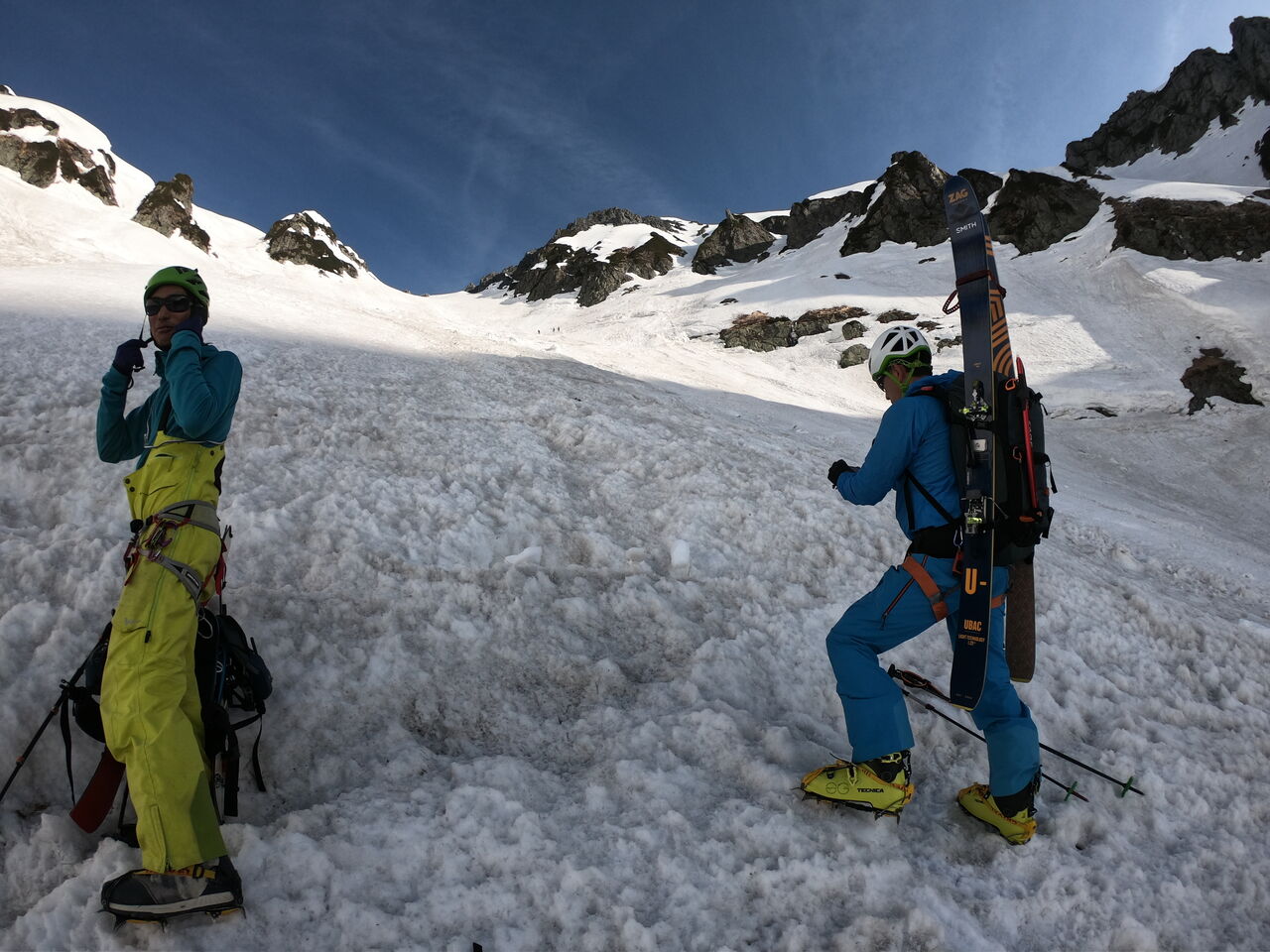 行程: 5/7 猿倉荘(1230m)9:15ー白馬尻(1560m)10:00ー杓子岳山頂(2812m)17:15ー幕営地(2620m)17:50
