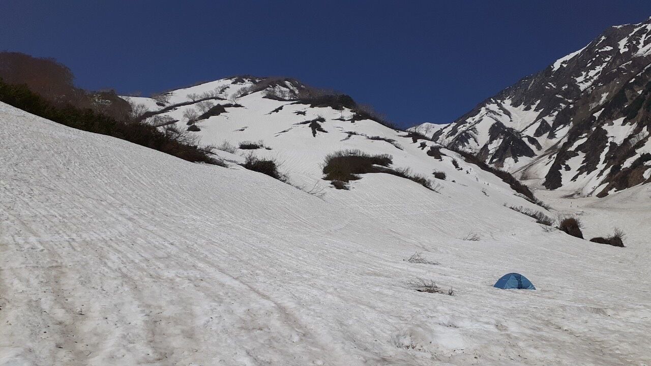 反省点:今回50リットルザックで行動したが、テント撤収時のパッキングに手間取った。行けないこともないがもうちょっと大きいサイズのザックのほうがサクサクパッキング出来たなあと思う(気づいてはいたが雪山テン泊では少々厳しい。。。。)。
