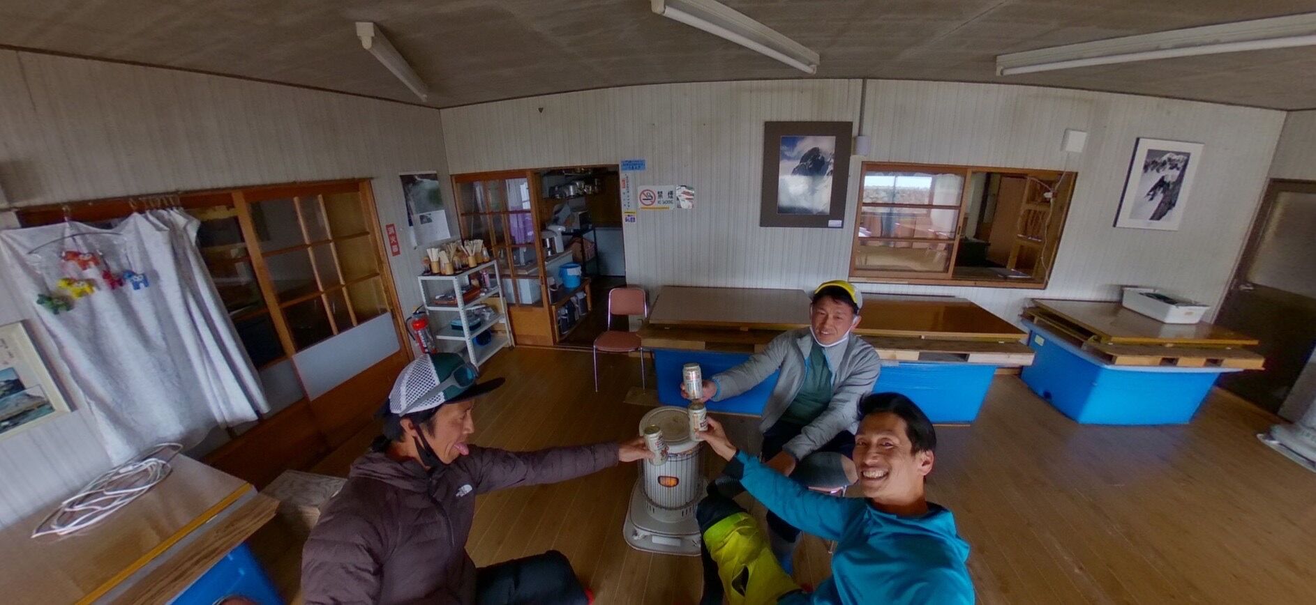 夕飯の鍋を食べたり、雪でかき氷作って食べたりして就寝。