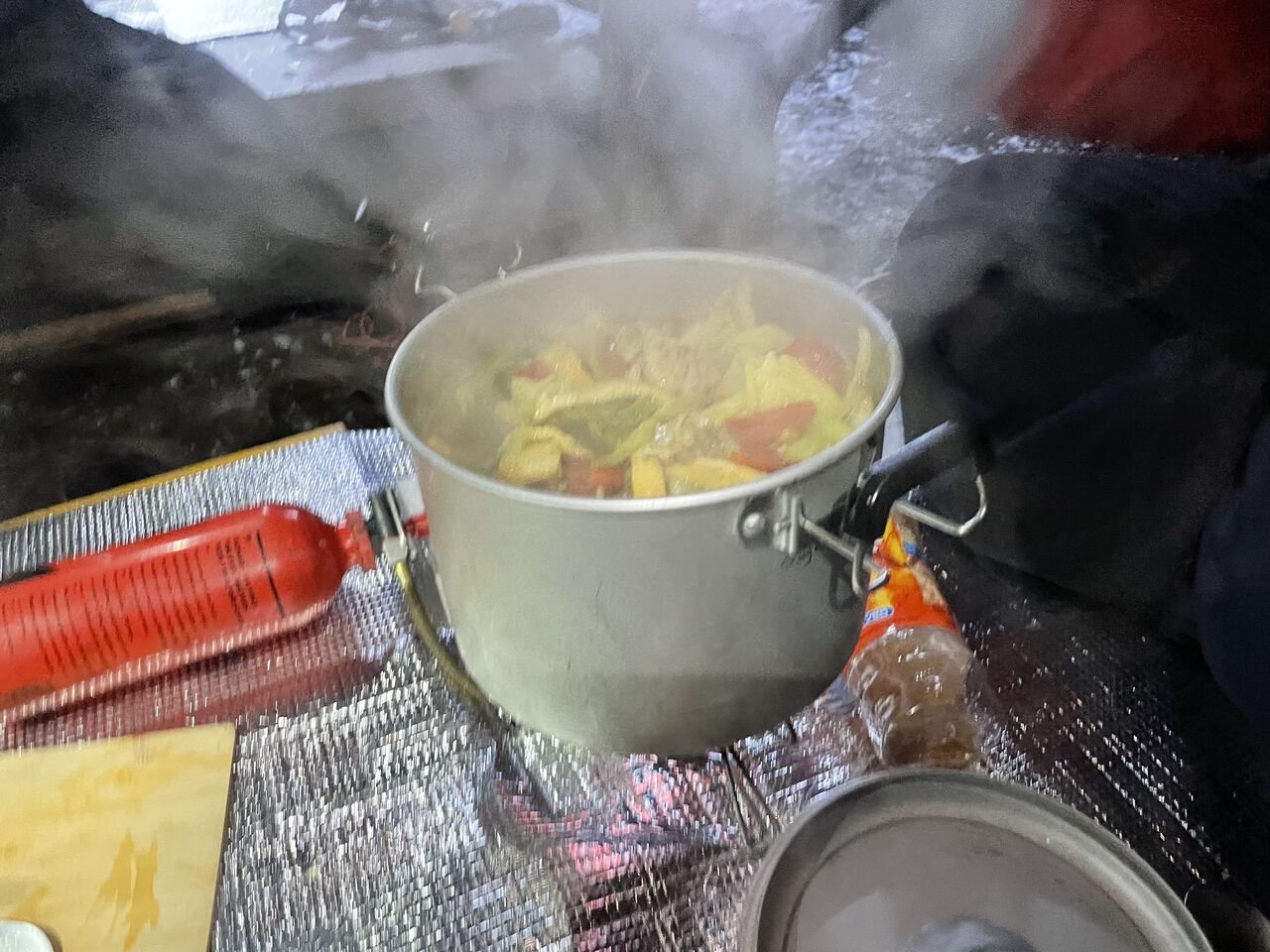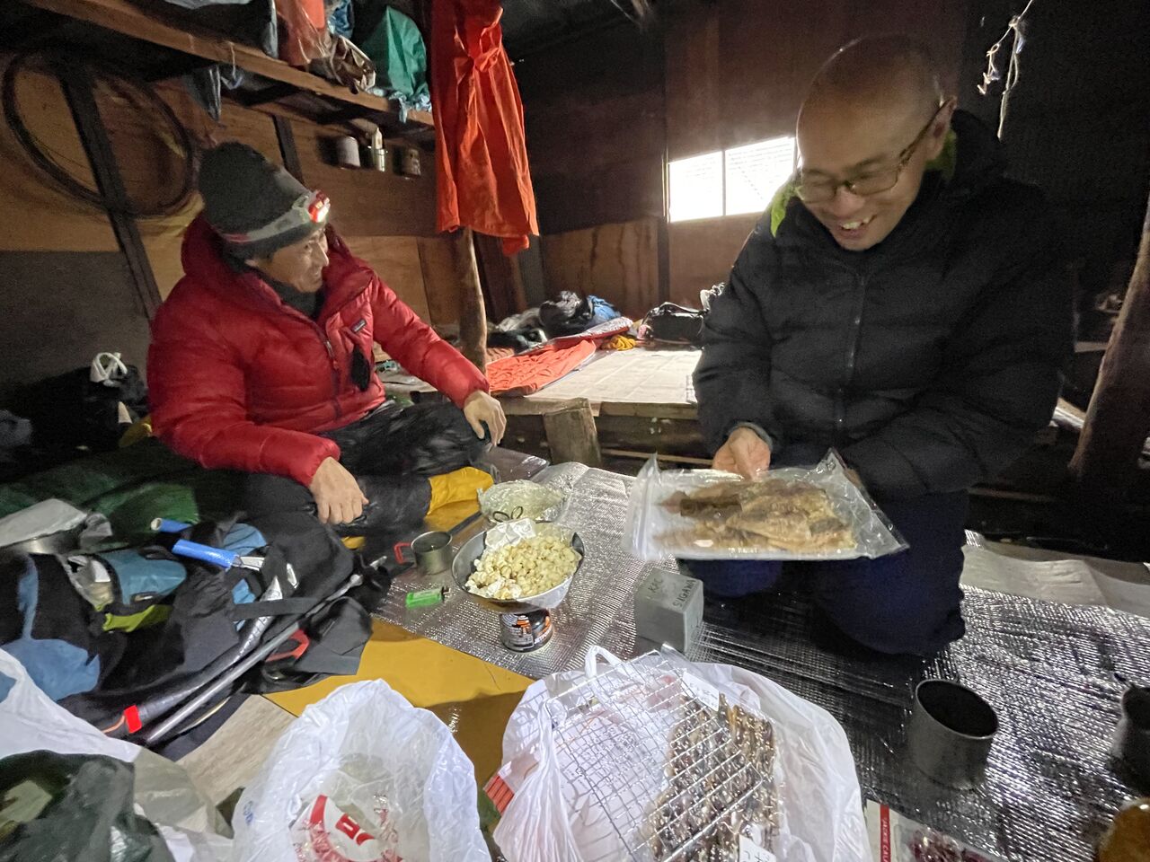 おせん特製ぜんざいをお腹に入れ、登攀具を背負いテントを後にする。