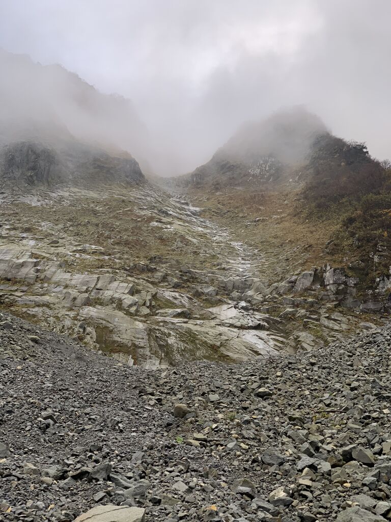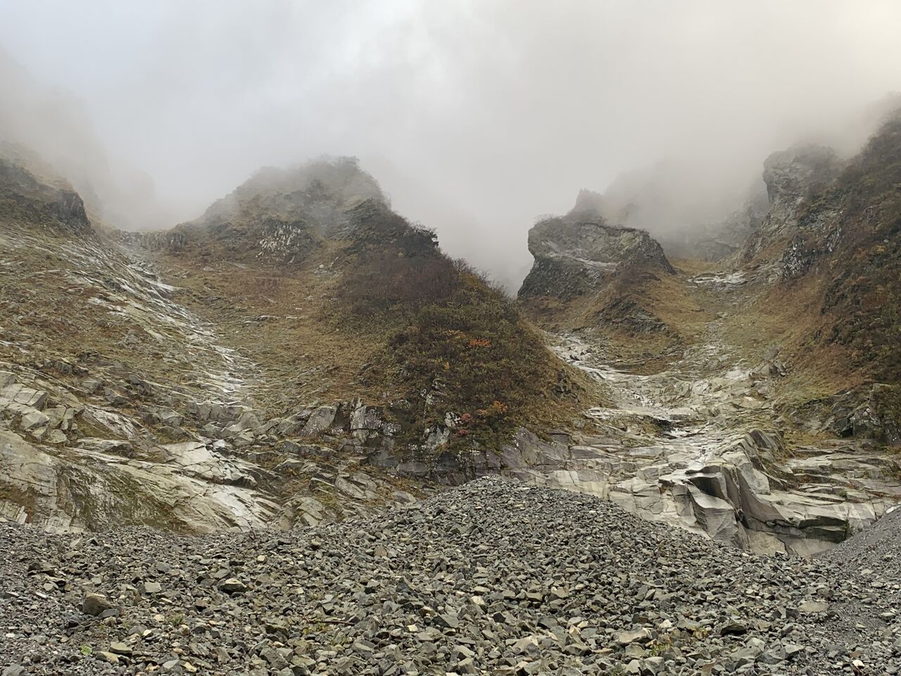 元谷小屋の左側のガレ沢を登り最後の堰堤