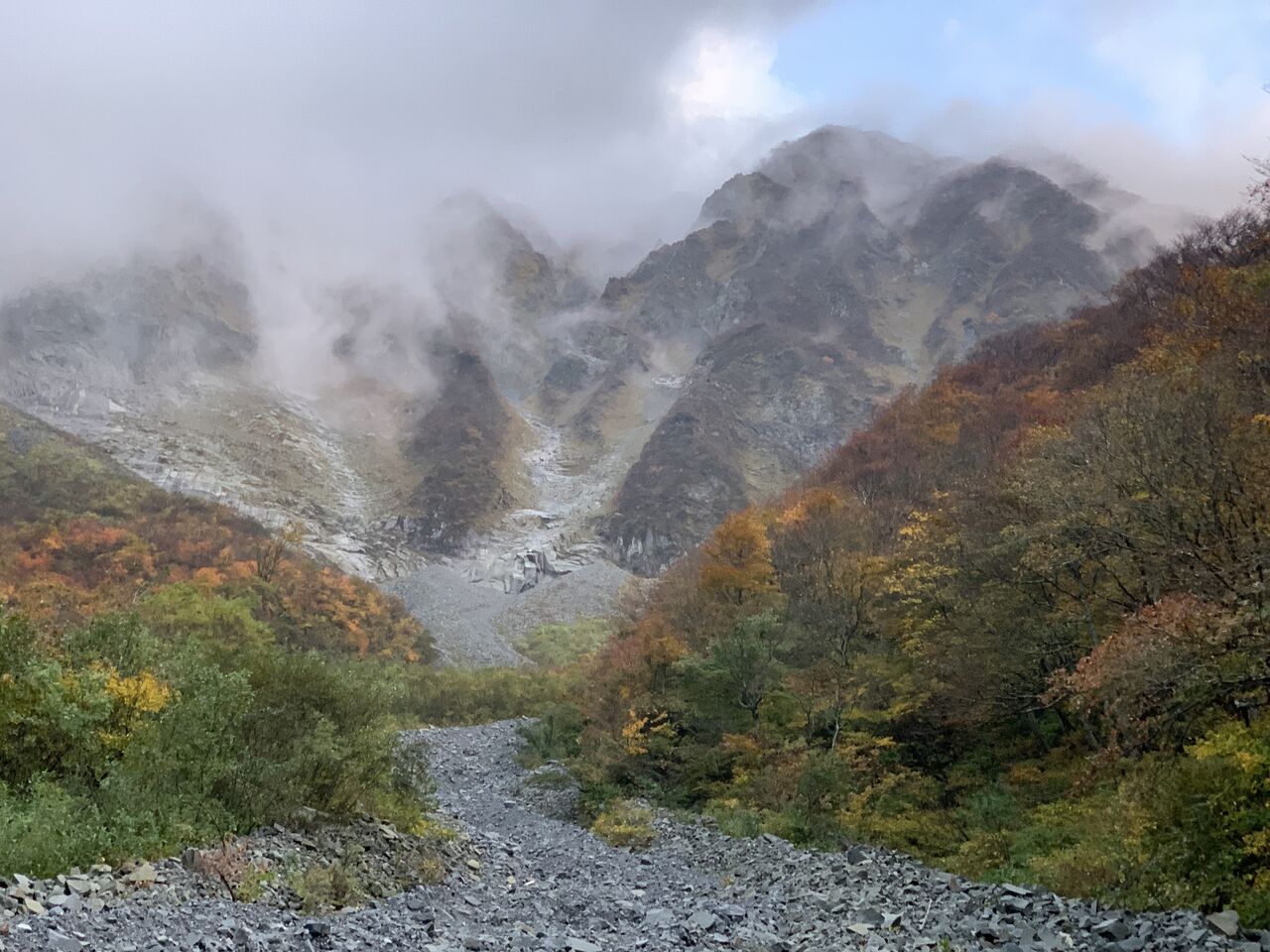 北壁の各沢は一部を除いてはガレと岩屑を固めた
