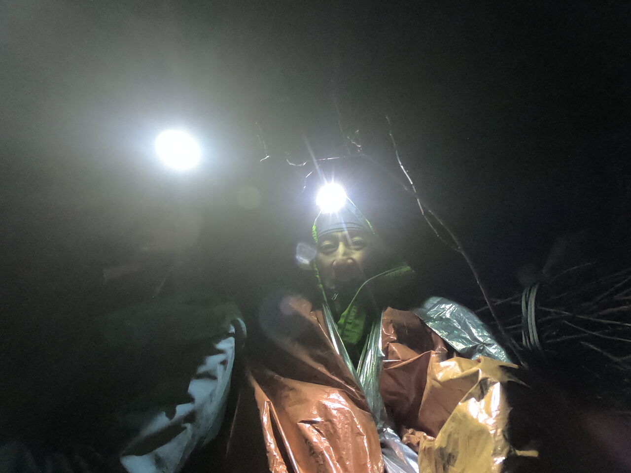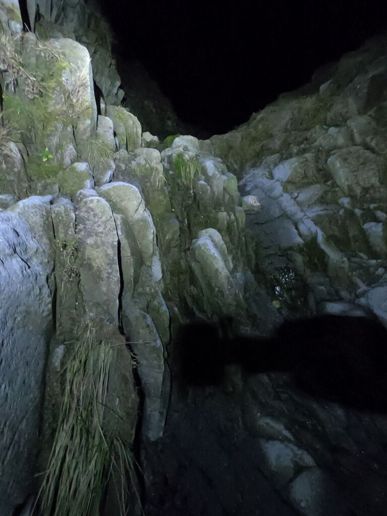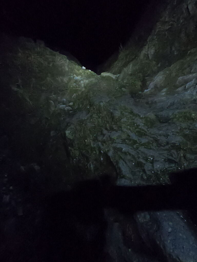 暗闇のなか、月とヘッドランプの灯りを頼りに進む