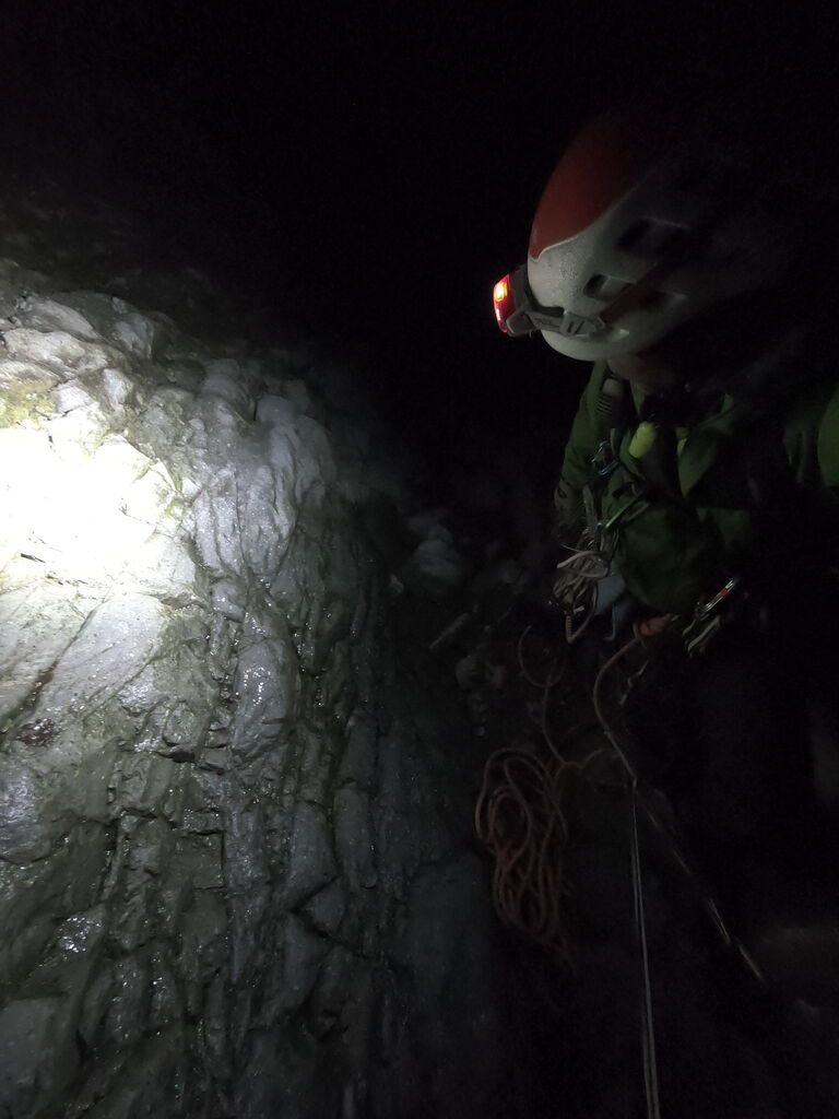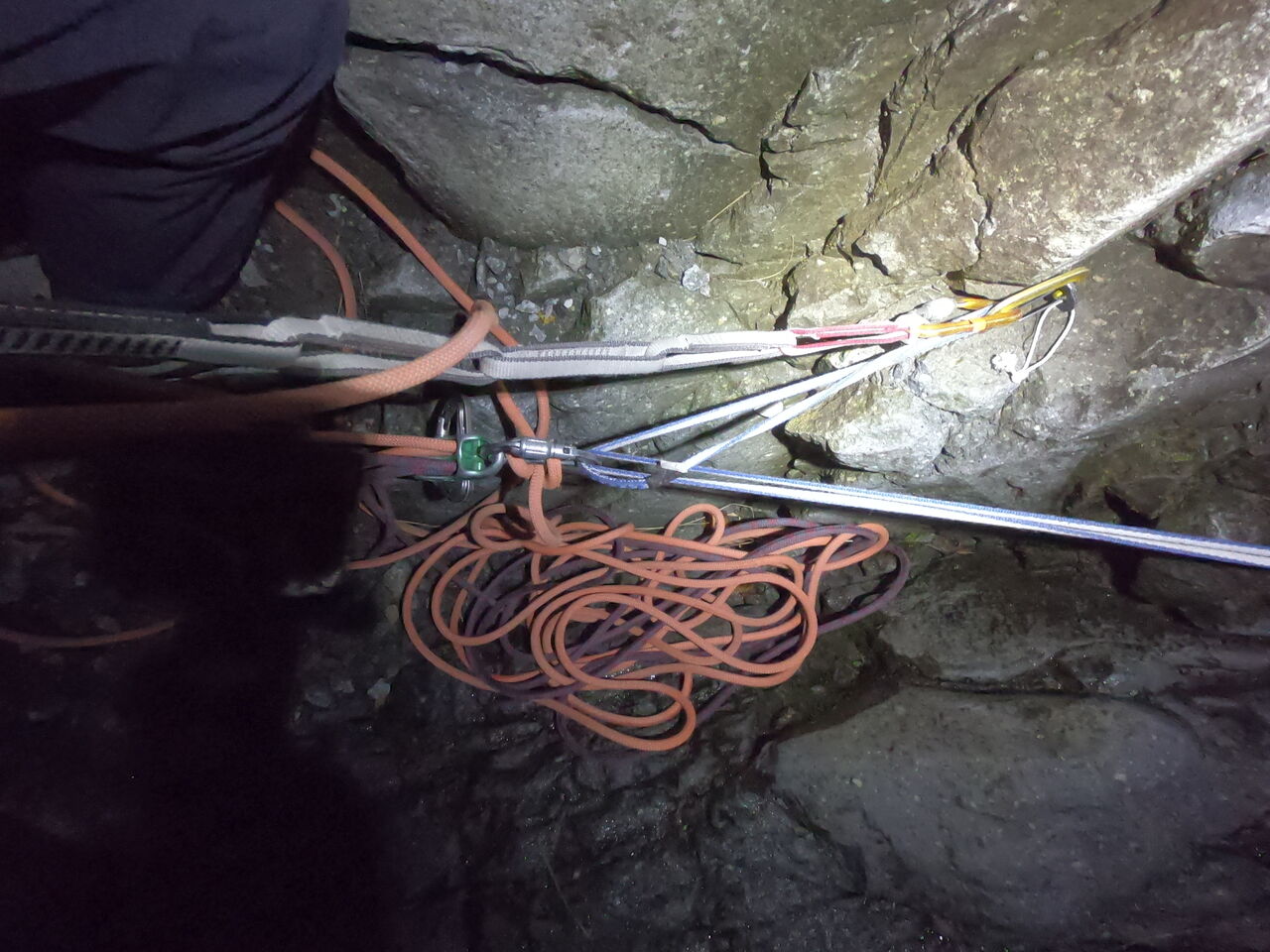 仕方なくビレイヤーの末端を解き何とか辿り着き