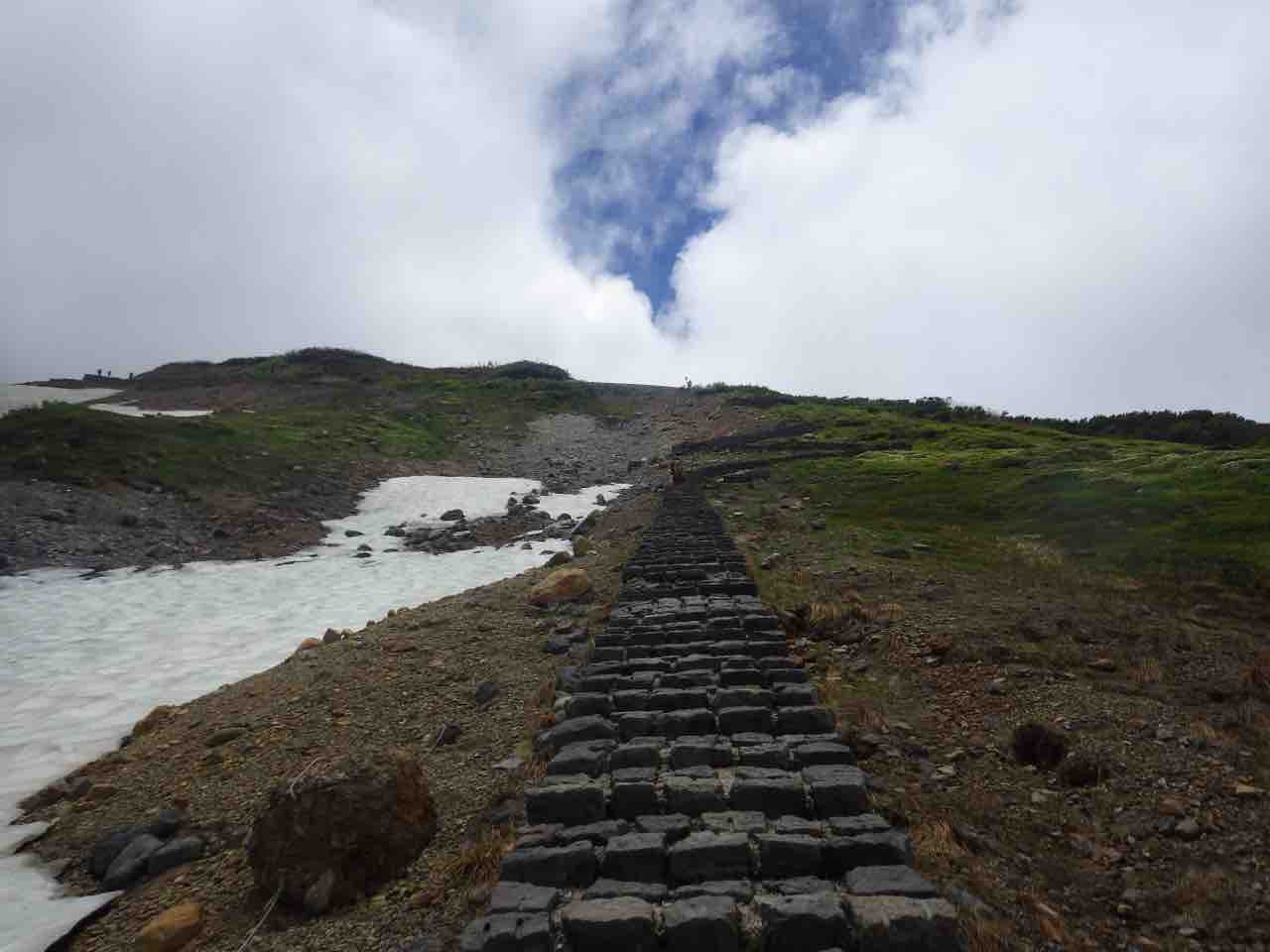 途中の分岐で別山や立山を経由して室堂に行くか少し迷ったけれど、まぁまぁ足も筋肉痛になっていたし、なによりもこの日差しで登るのはちょっとキツいなぁと弱気になったので素直に劔御前から雷鳥沢に降りて室堂に行くことにする。