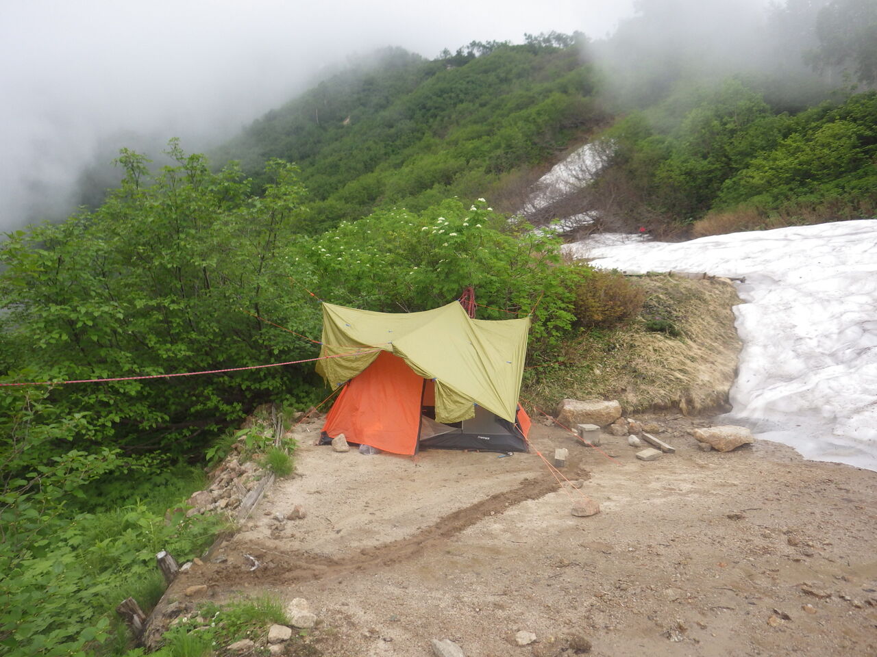 とはいえ、雪渓があることで水を担ぐ必要性が変わってくる。今回は早月小屋のテント場にはたっぷり雪が残っていたので、水は行動分だけでも良かった。