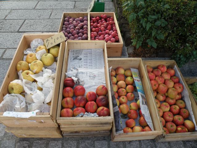 今日は大家さんからお庭のプルーンとぶどうをいただいて、