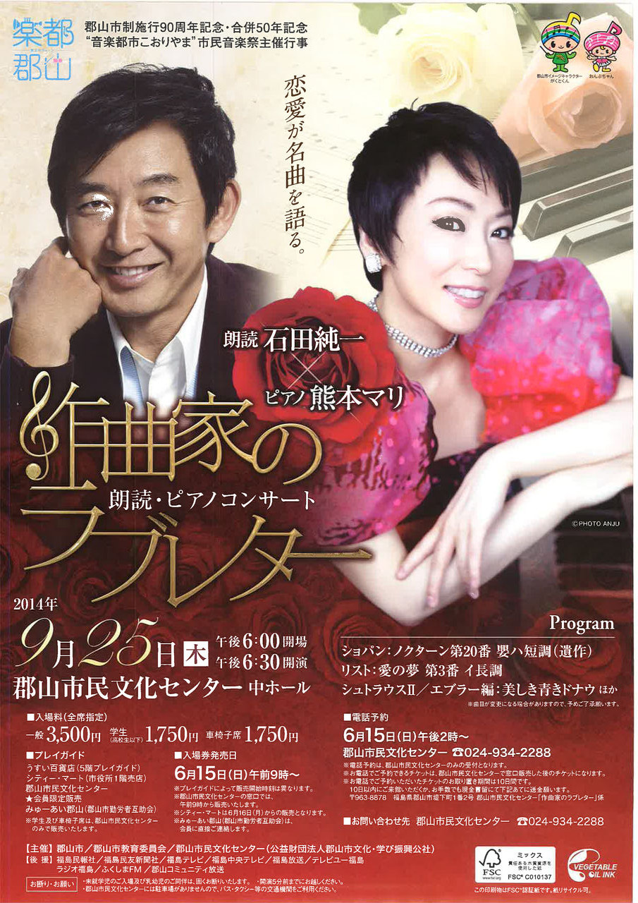 【作曲家のラブレター 朗読・ピアノコンサート】が開催されます。