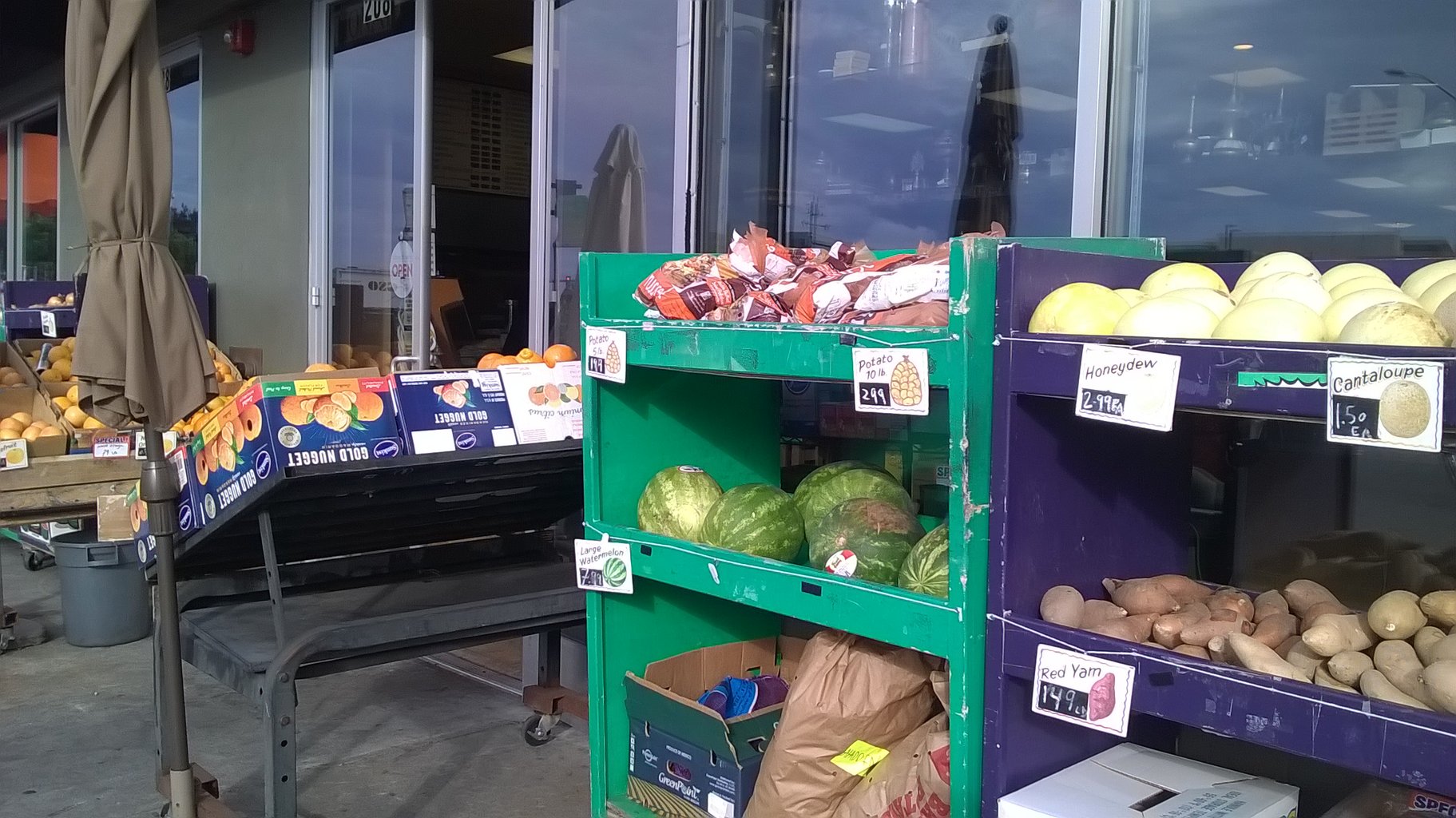 店の前に並んでる野菜とか、えらく安いけど、日に当たりまくりで買う気にならず。