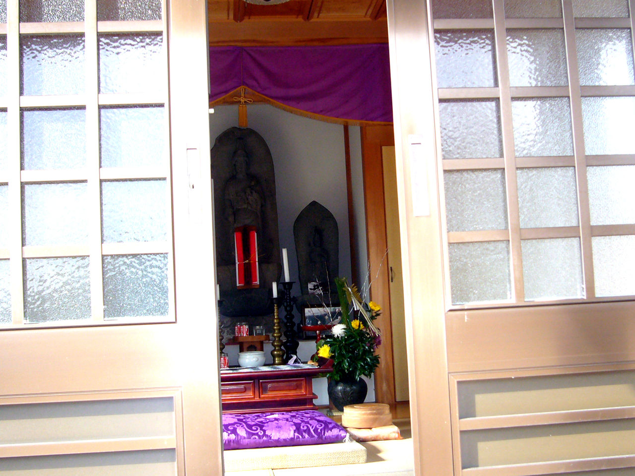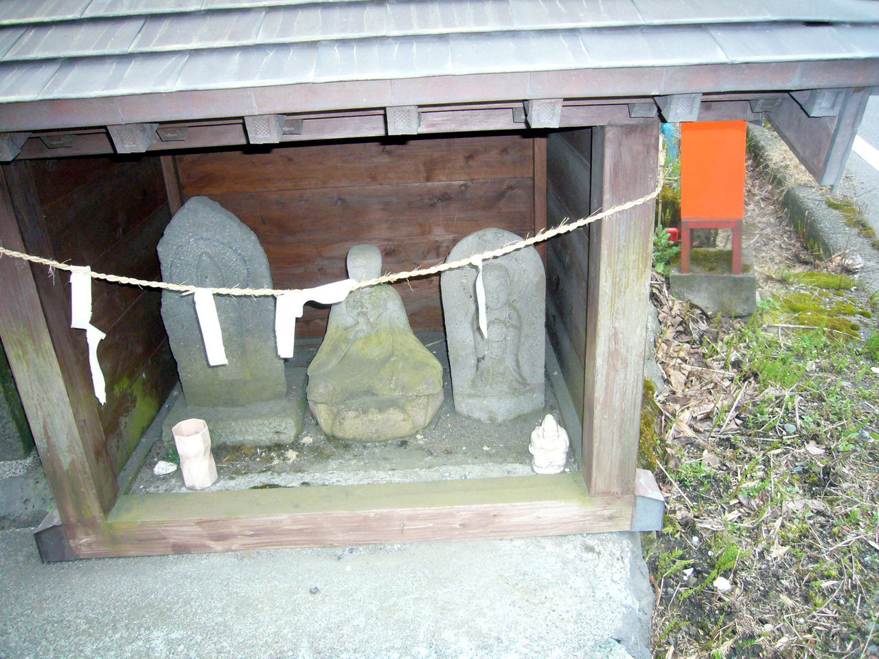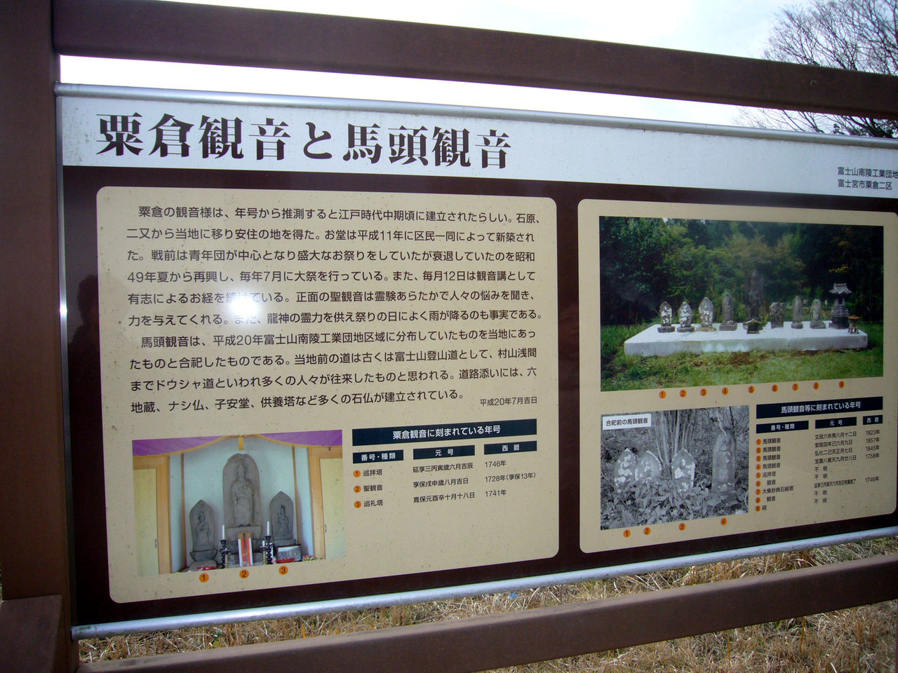 粟倉観音堂:観音堂には石に浮き彫りされた三体の観音像が祀られている