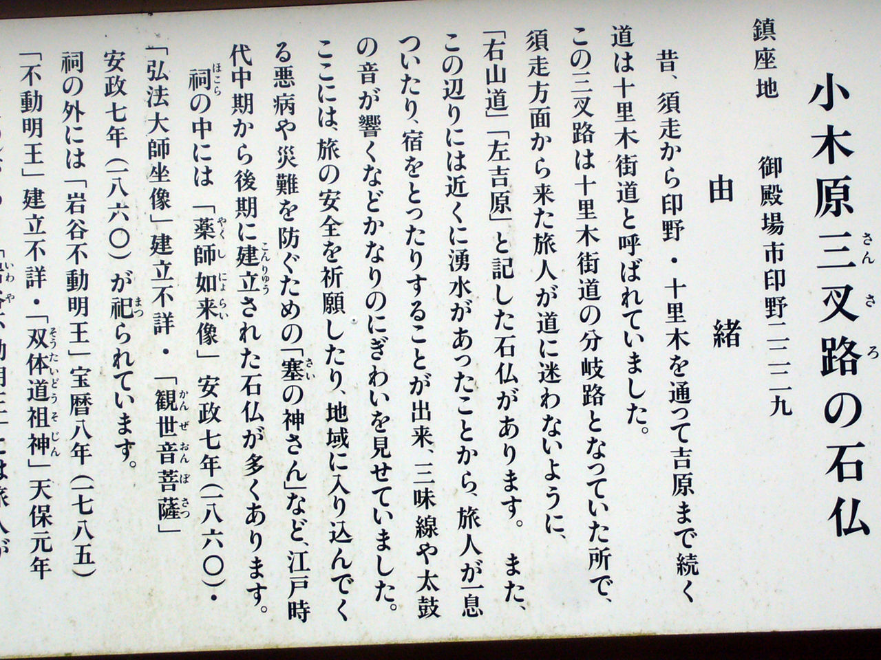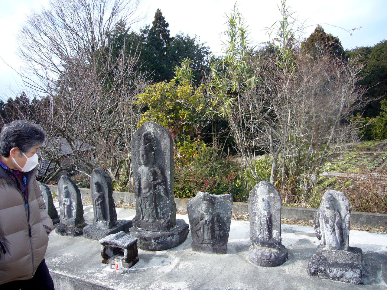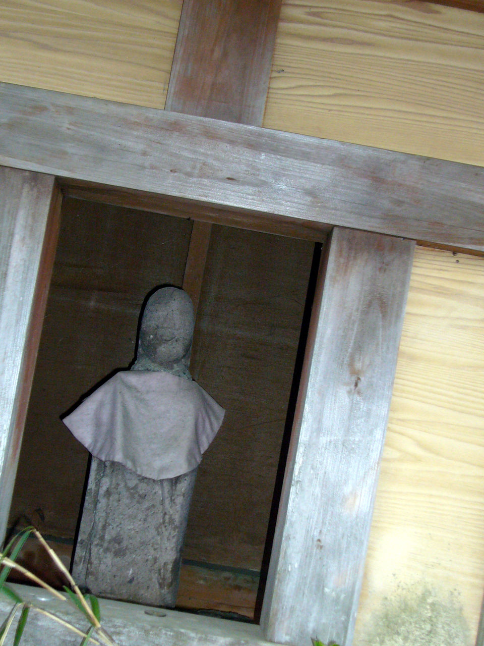 粟倉観音堂:観音堂には石に浮き彫りされた三体の観音像が祀られている