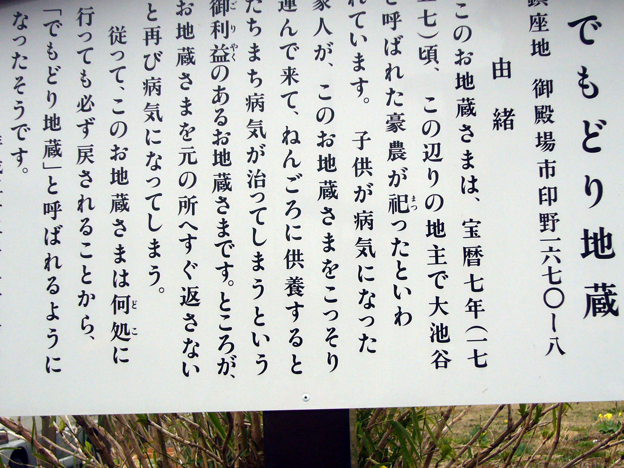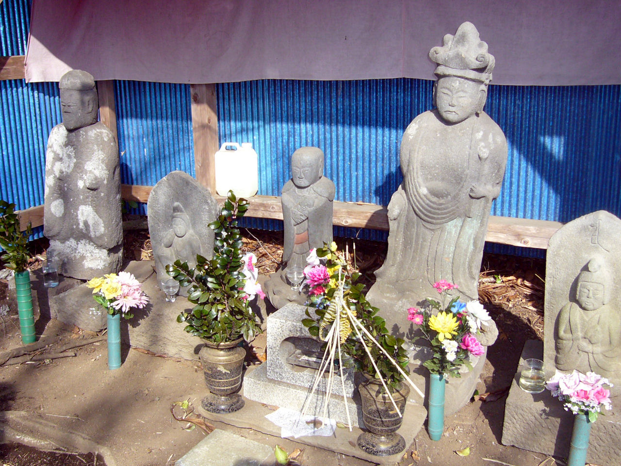 「子安さん」と呼ばれ子供をを抱いた石造物。かっては縁日に出店が