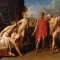 この作品では左が湖面のナルキッソスです。巨人のようで不気味です。とても美少年には見えません。