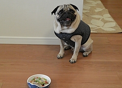 大根の葉っぱを茹でたモノとドッグフード(一食の半分量)