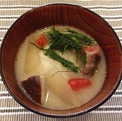 毎年、元旦は、夫の関西(兵庫)の白味噌仕立てのお雑煮