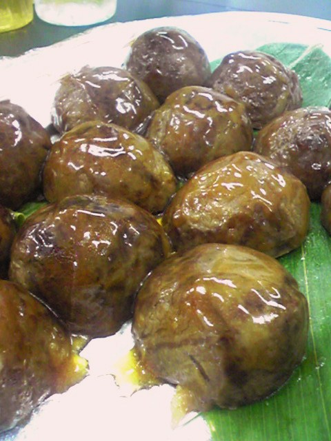 地元のもち米を蒸して、米沢牛で巻いて甘辛く煮た物。