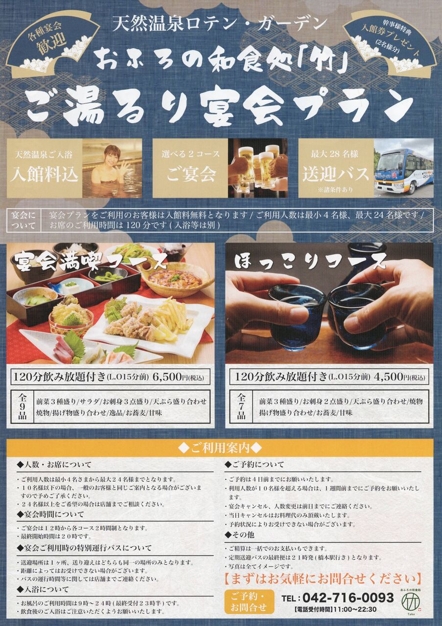 当苑と隣接する天然温泉ロテン・ガーデンのご会食プランをご紹介いたします