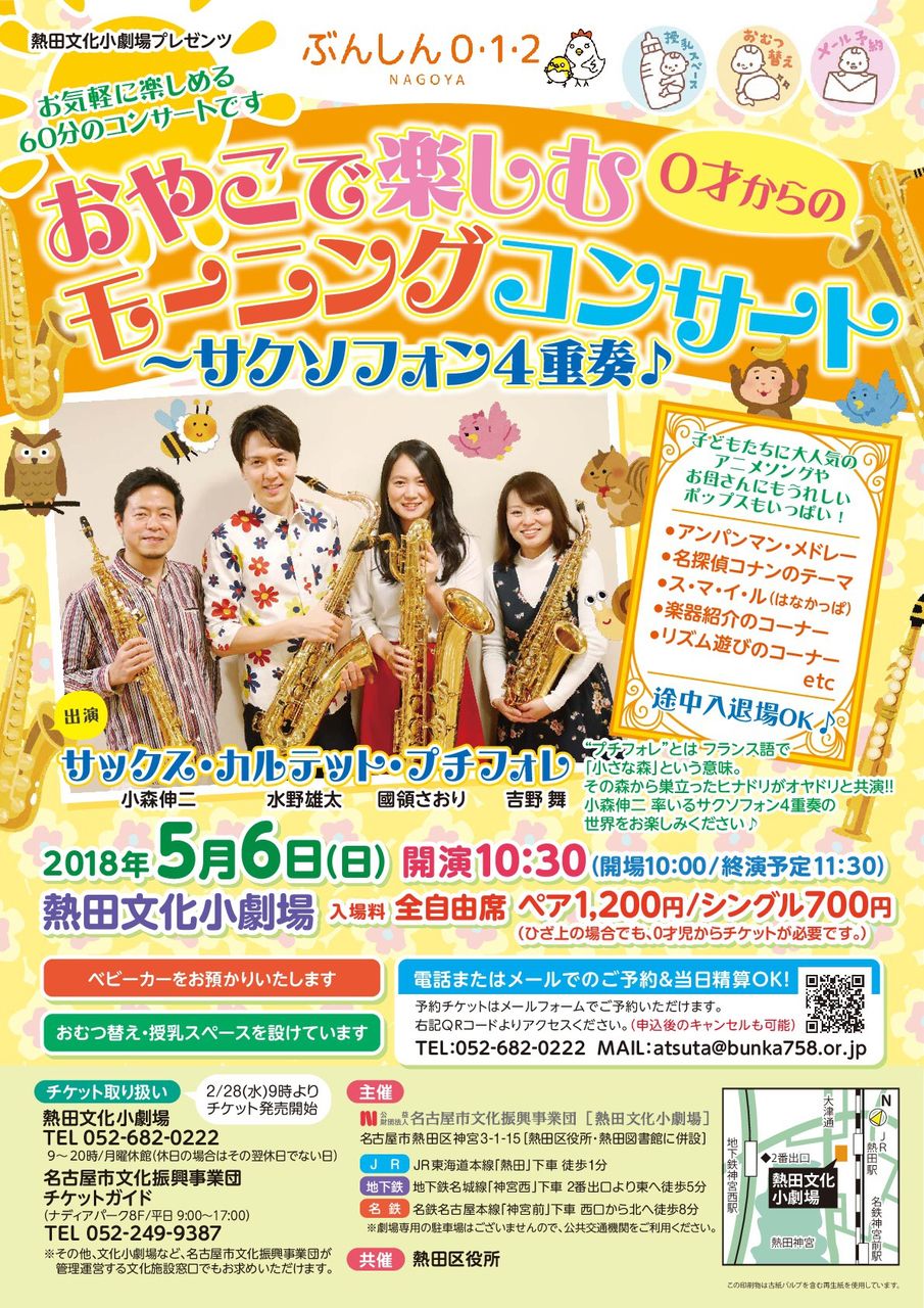 そして次は5月6日に熱田文化小劇場で行われる、「おやこで楽しむ0才からのモーニングコンサート」