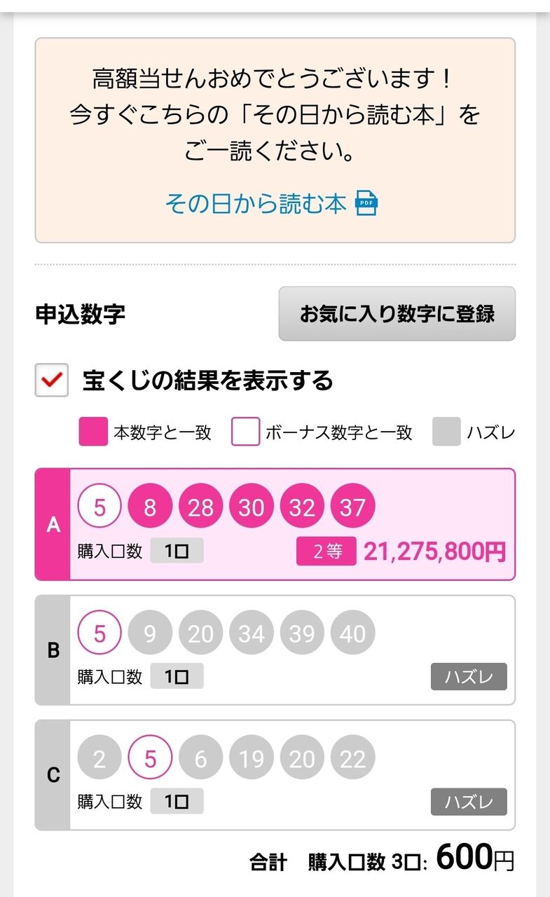 ちなみに、これで高額当選5回目です