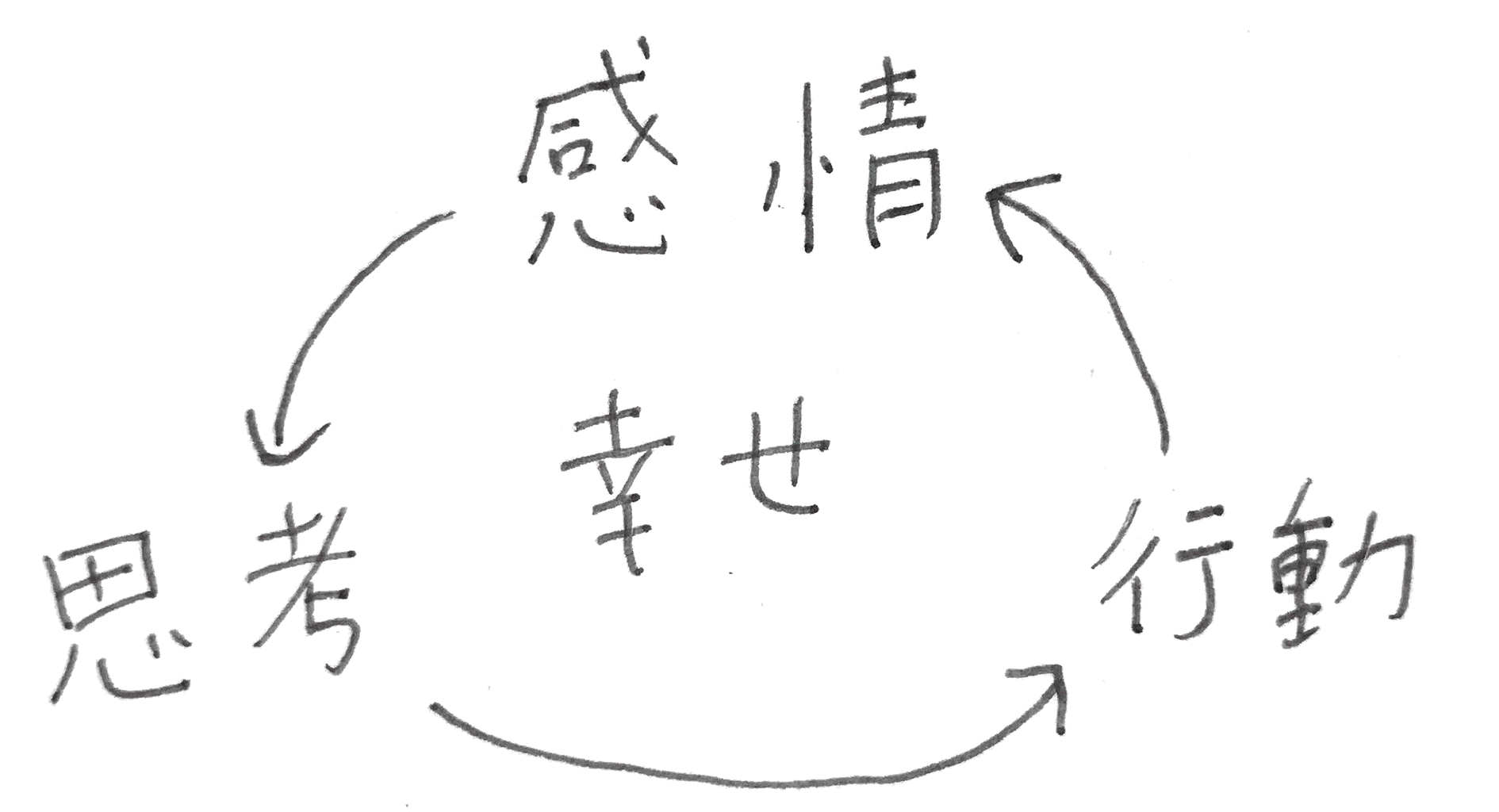 別の言い方をすれば、自分の①感情(心)と②思考(頭)と③行動(体)を、全て幸せに向かって連携させ、好循環を作る方法とも言えます。