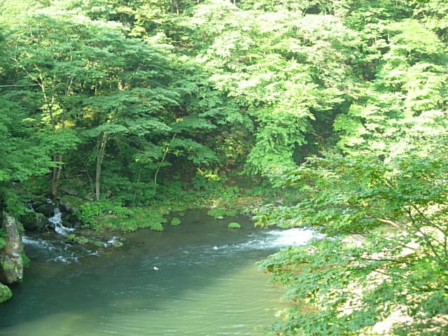 駐車場の下を流れる箒川の景色です。