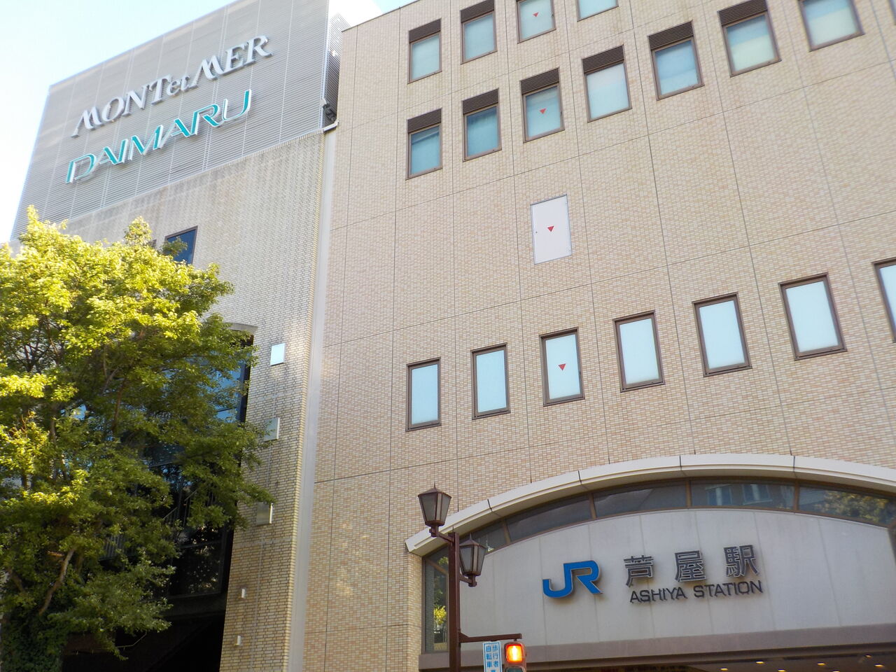 出発したバスはまもなく「JR芦屋駅」に到着です。新快速停車駅でもある芦屋駅には、モンテメールという駅ビルがあり、百貨店の大丸などがテナントとして入居しています。また、駅の北側にはラポルテという商業ビルがあり、コープこうべやホテル竹園などが入居しています。ホテル竹園は、甲子園球場で試合がある際に巨人の選手が宿とすることで知られております。