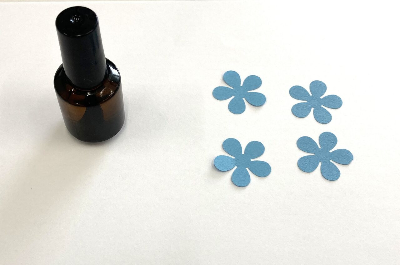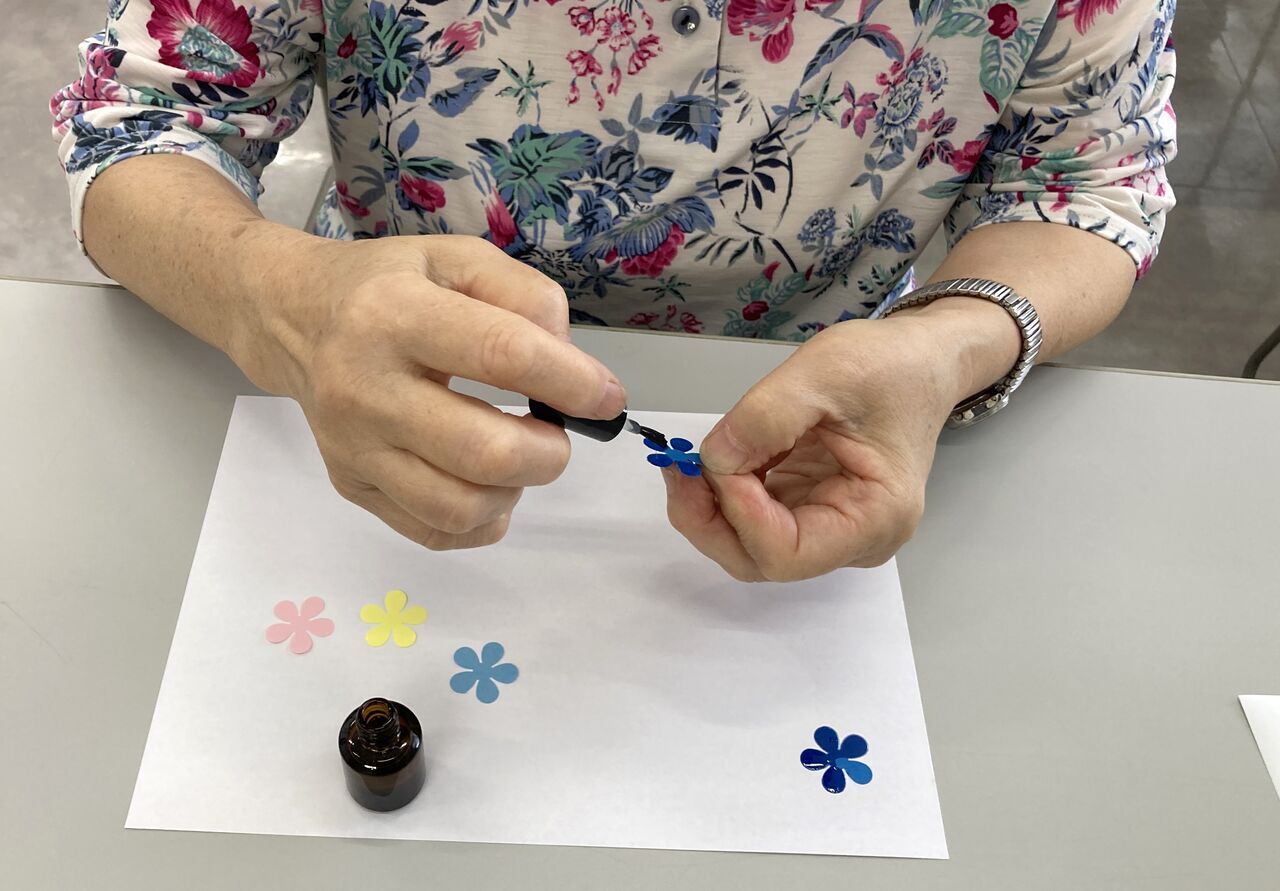 最初にお花の形の紙を4枚選びます。どの色にしようかな…皆さん悩むところです。