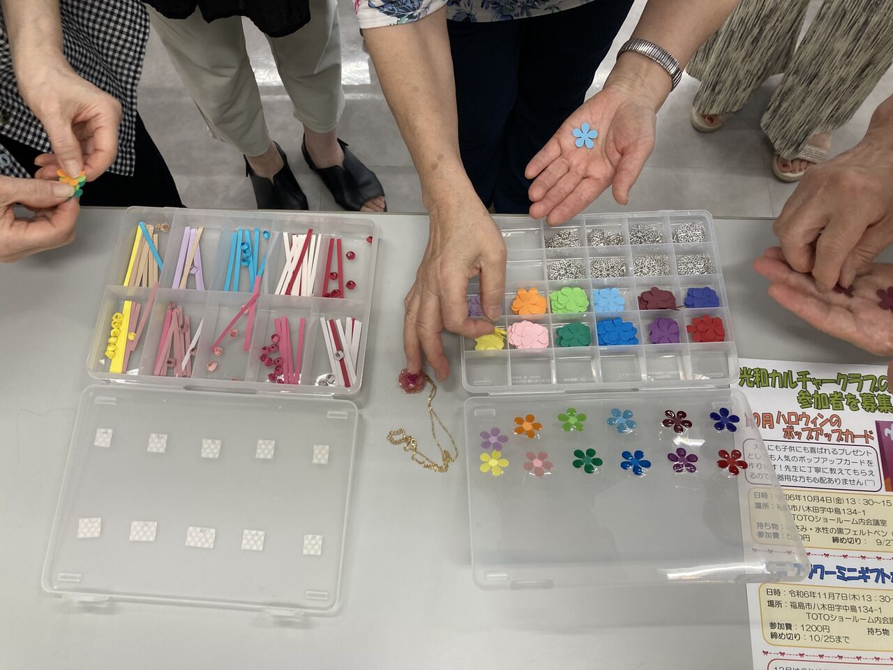 さて、光和カルチャークラブ 9月の活動は『ロリエフ』 ネックレスを作りました。