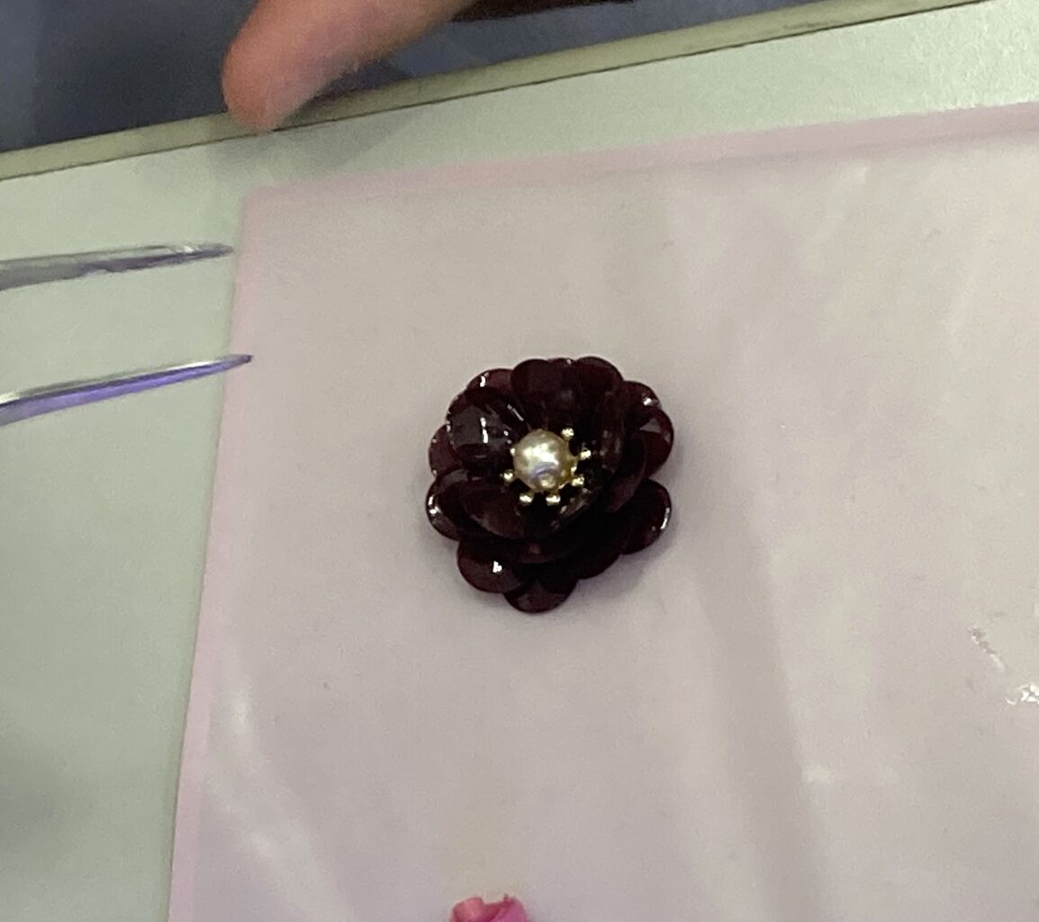 花びらを重ねて花芯の部分にボンドで押さえます。