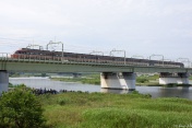 多摩川橋梁を走行するロマンスカー LSE -02