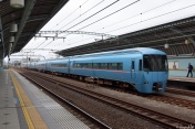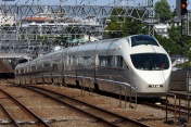 飛鳥山を背景に、王子駅横を通過する特急「はつかり」 -01