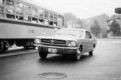 疾走するマスタングと都電3000形 3182