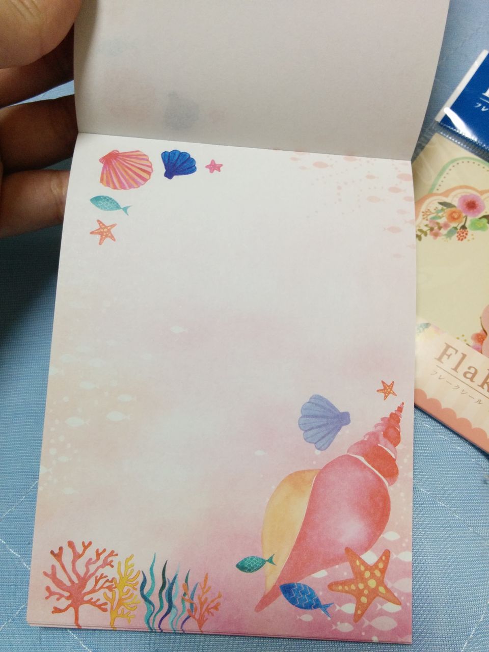中はこんな感じで、海!って感じでとても可愛いです(*-ω-)*´ω`)色合いと、貝殻が素敵♡