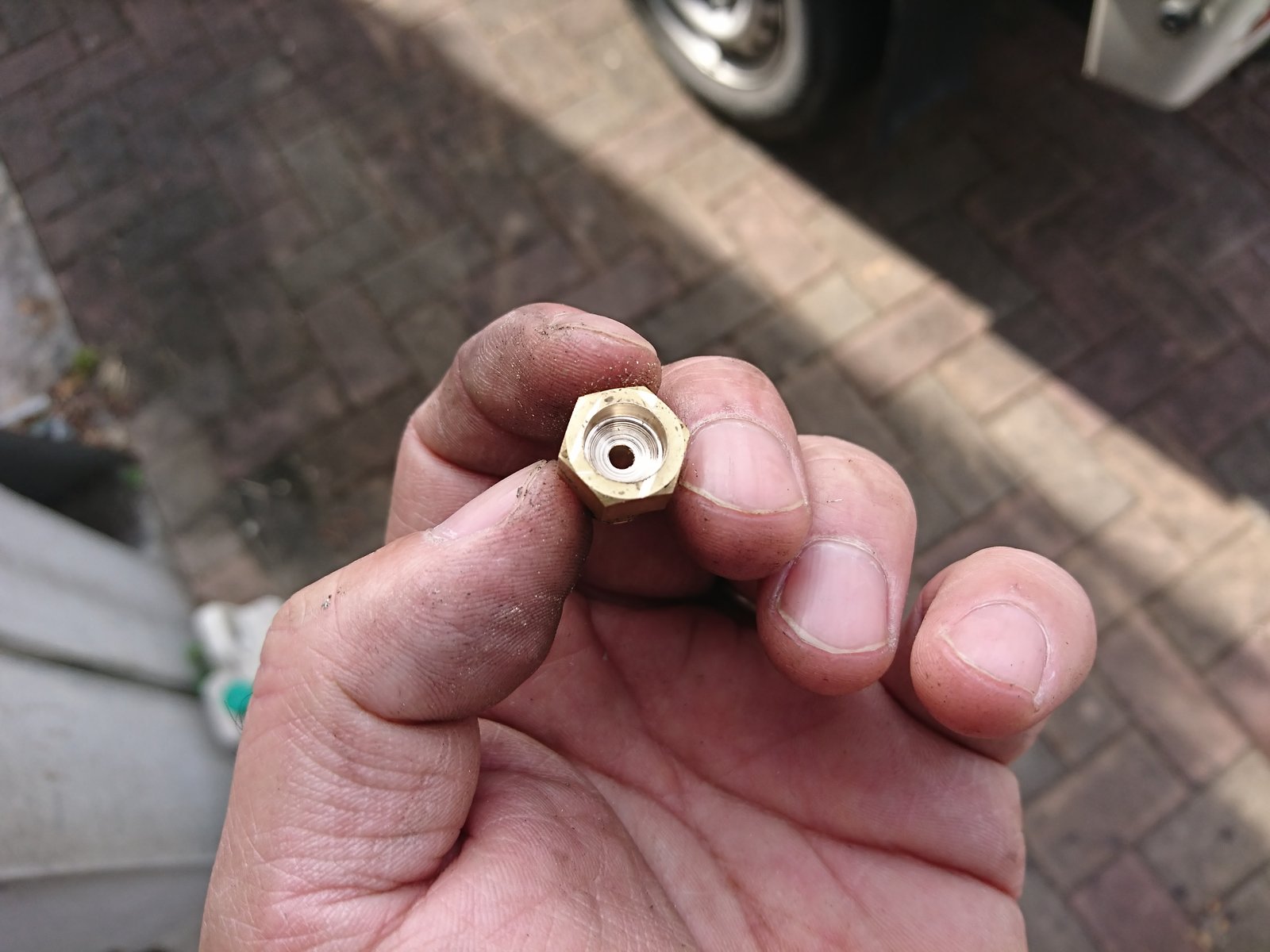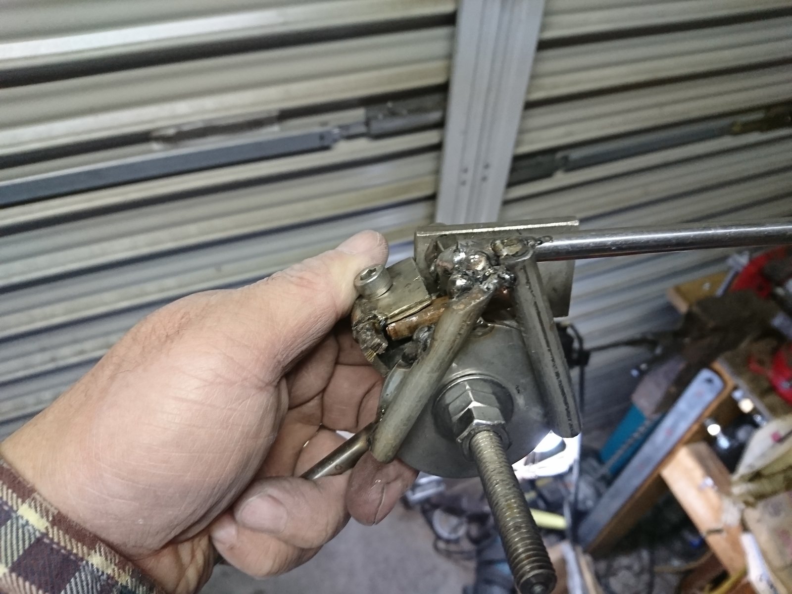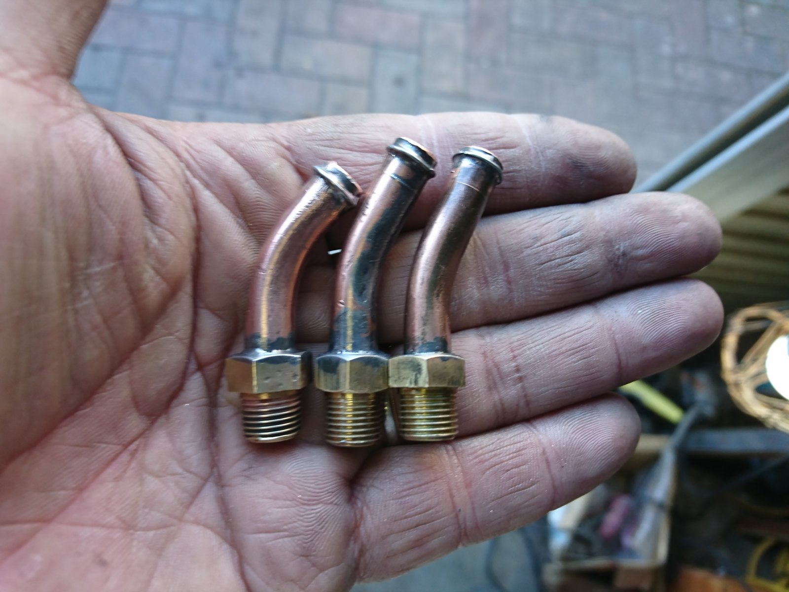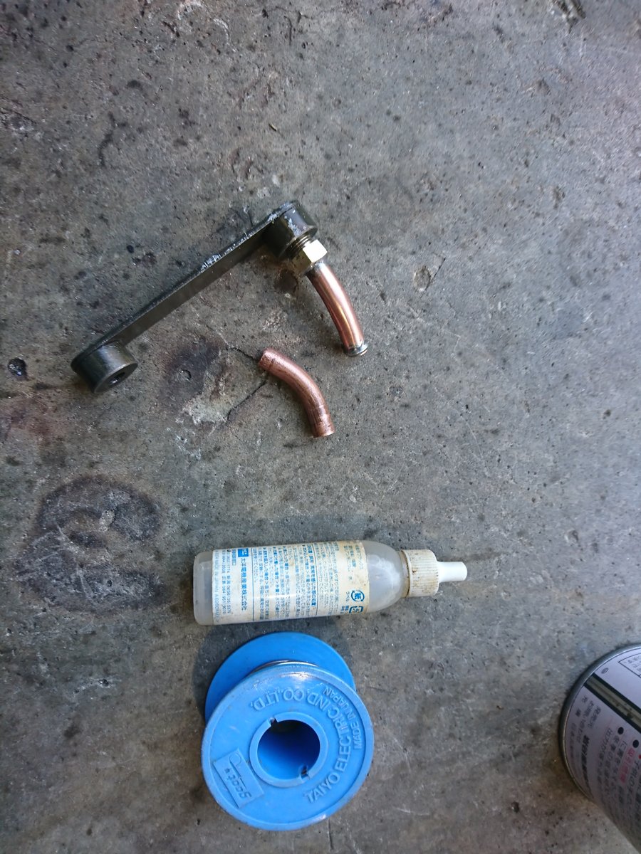 そんでこれまた適当にPT1/8のタップを切ったジグに先ほどのぶっ切ったタケノコを付けてはんだ付けします。
