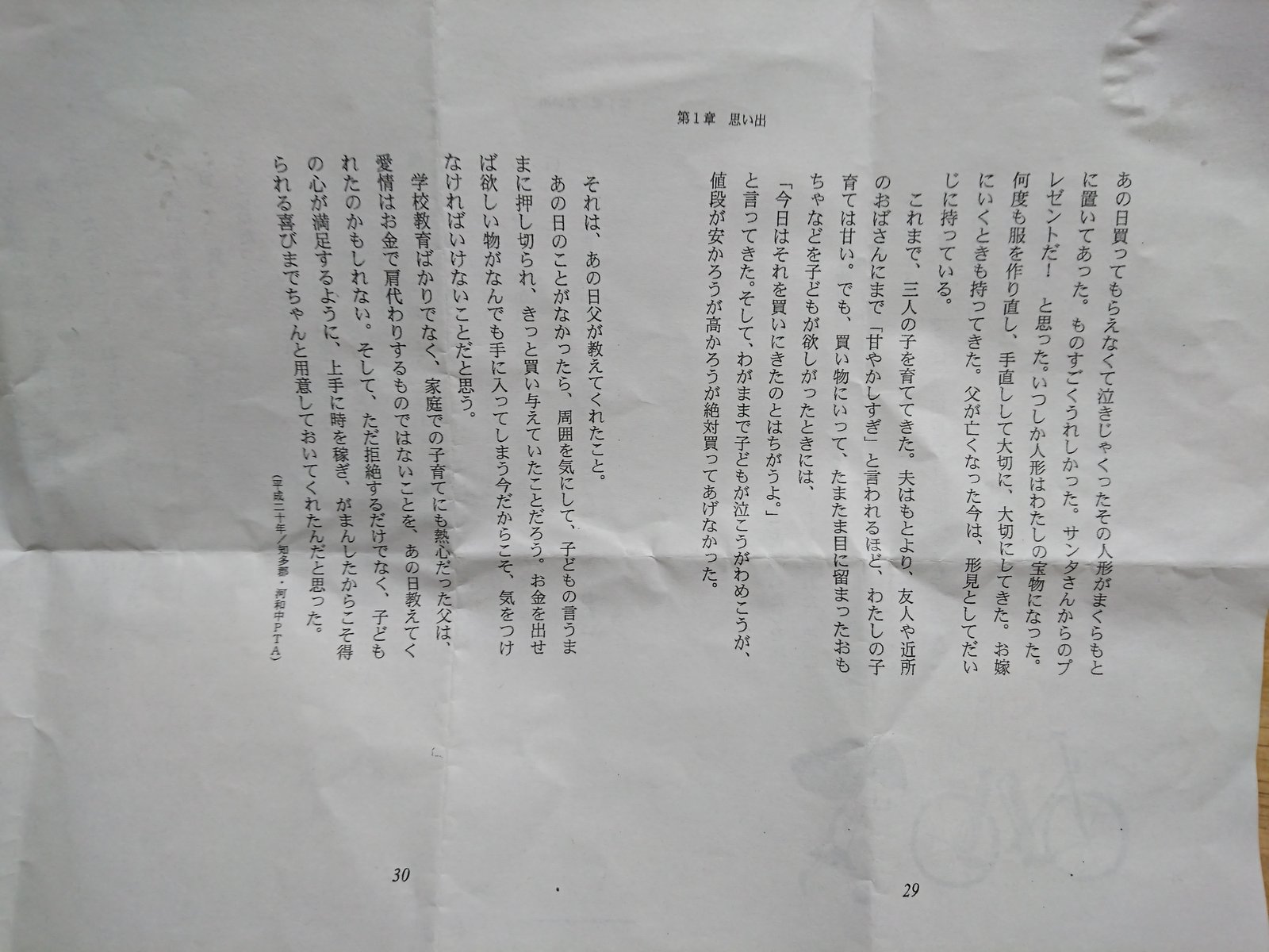 何度も何度も壊れたところを直し、父が亡くなった今もその人形は形見として手元にある、という話です。