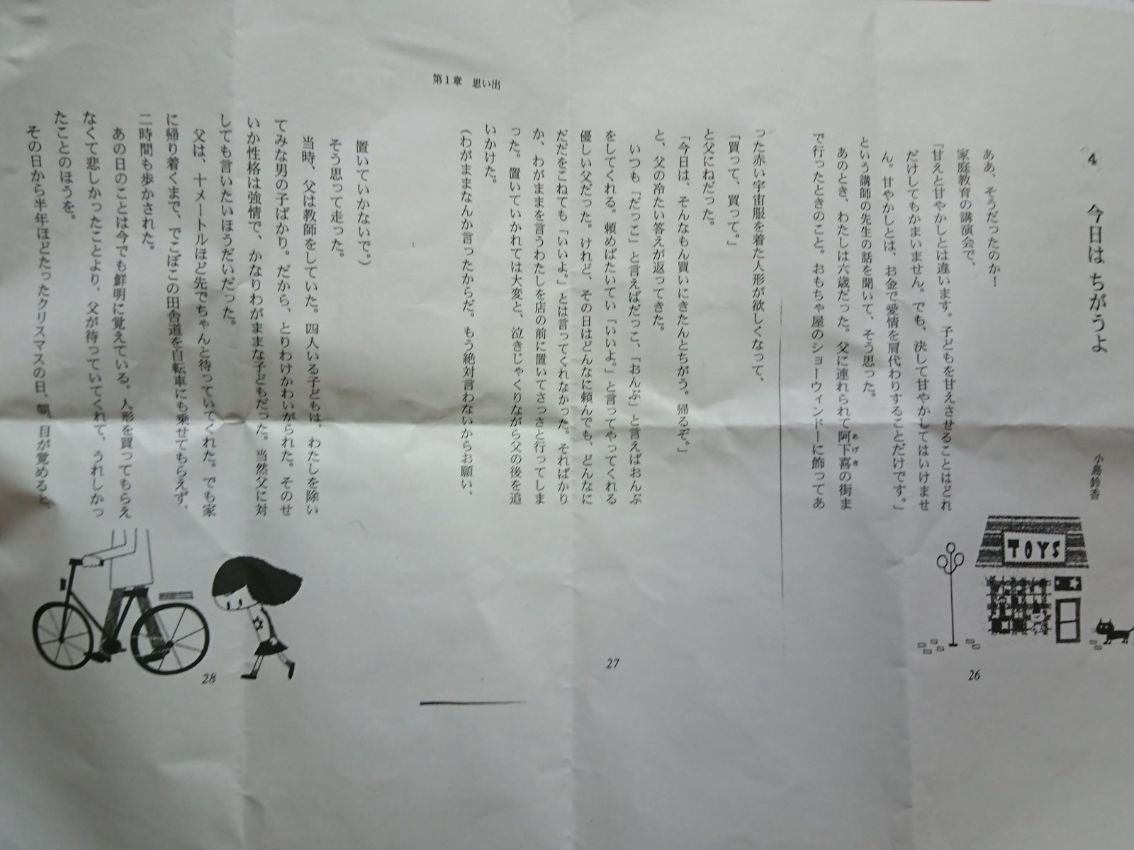 父と出かけた日、ふと見かけたショーウインドウの中の人形を子供だった筆者はねだります。