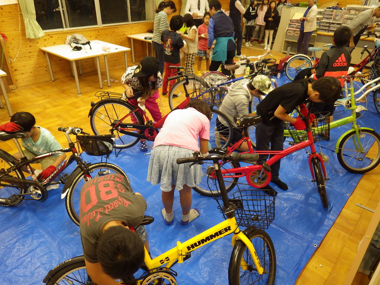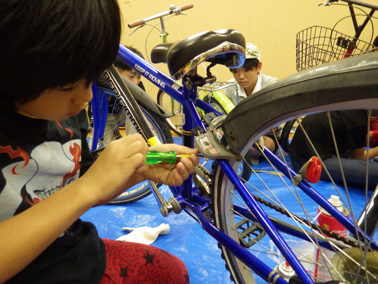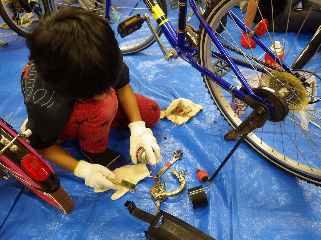 頑張って、自転車の分解を始める子供もいます。