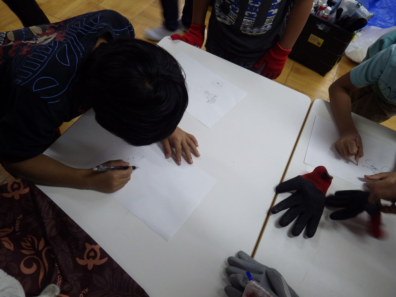 『しもやんで~す・・・、それじゃあ初めにみんなが乗って来た自転車の絵を書いて見よか・・・!』